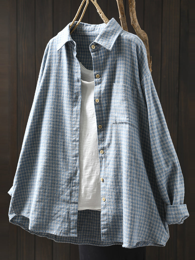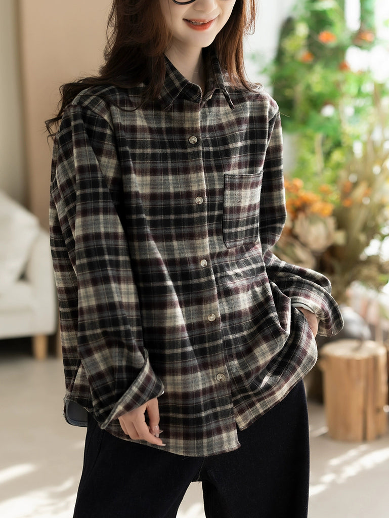 Women Winter Retro Plaid Turn-down Collar Shirt