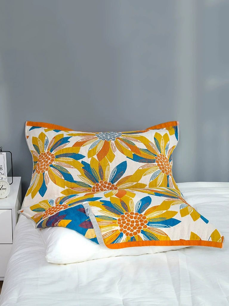 2 Pieces Cotton Sunflower Soft Sweat Absorbent Pillowcases