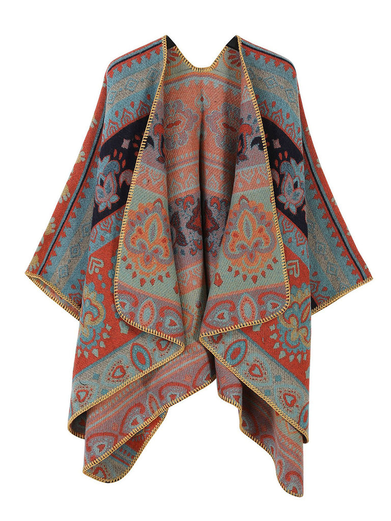 Women Winter Ethnic Floral Ramie Padded Stand Collar Coat