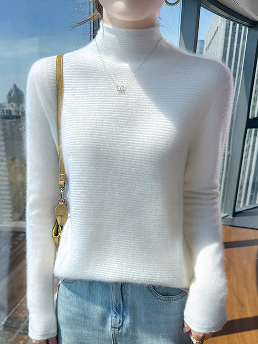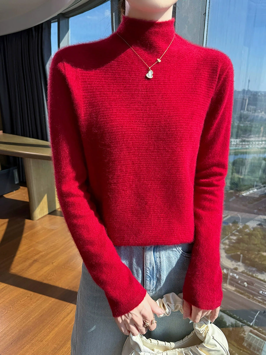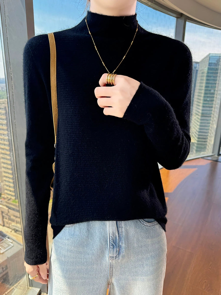 Women Autumn Artsy Pure Color Half-Turtleneck Sweater