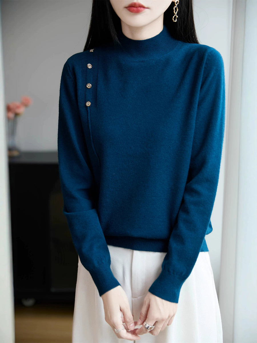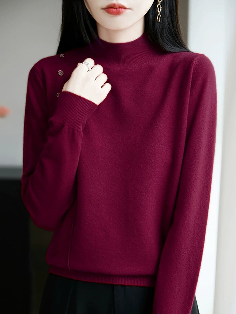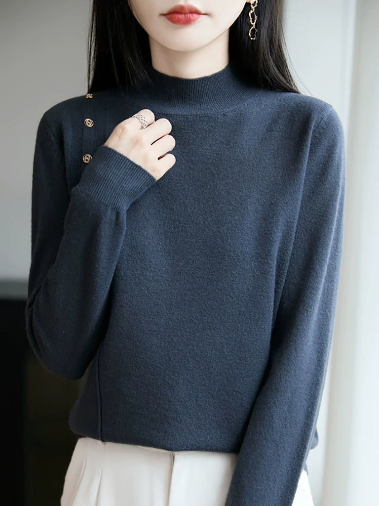Women Winter Casual Pure Color Turtleneck Bottom Blouse