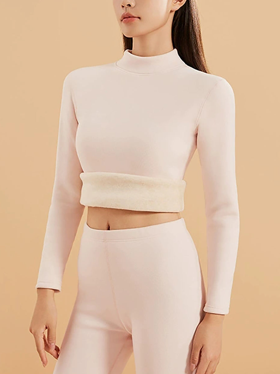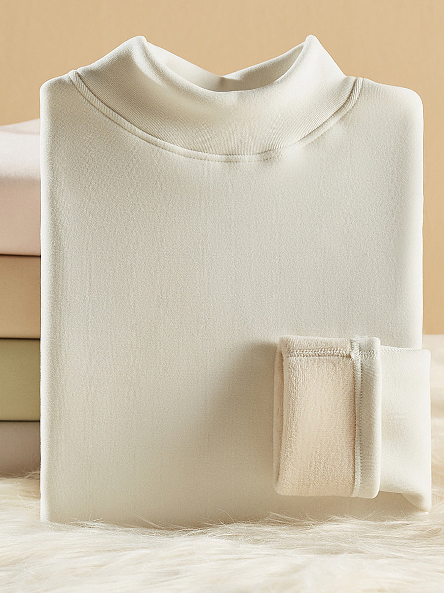 Women Winter Pure Color Half-Turtleneck Base Blouse