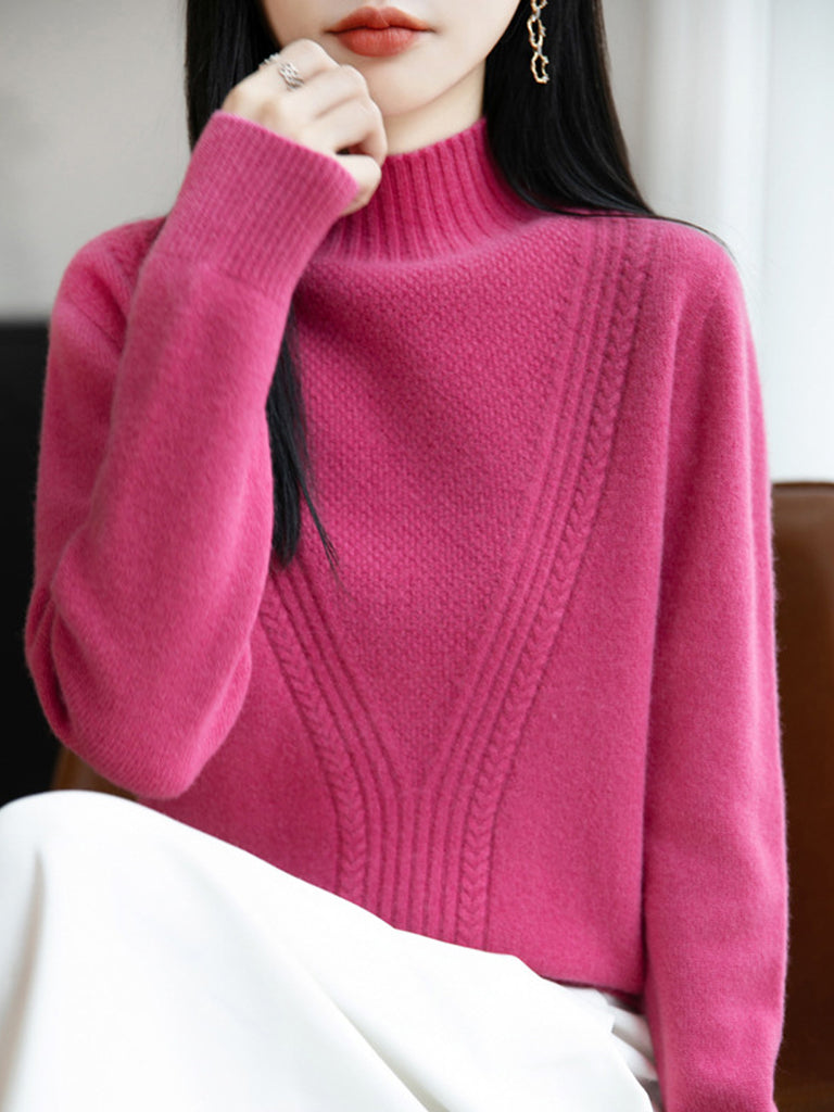 Women Winter Pure Color Half-Turtleneck Sweater