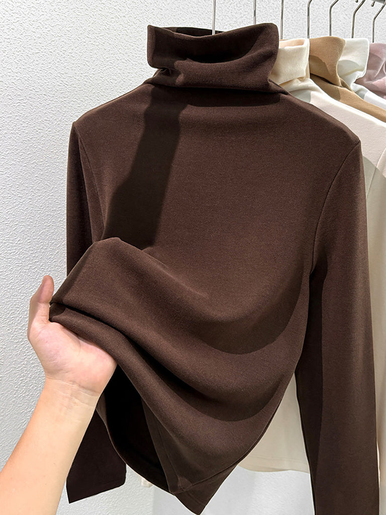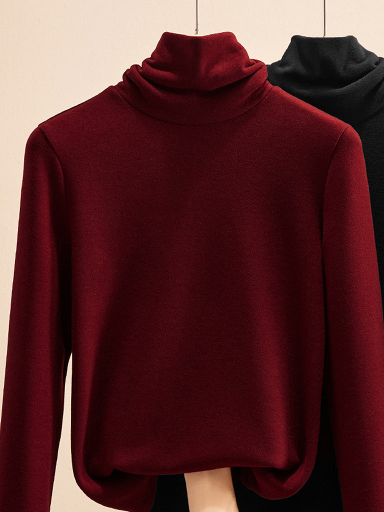 Women Vintage Winter Pure Color Turtleneck Base Blouse