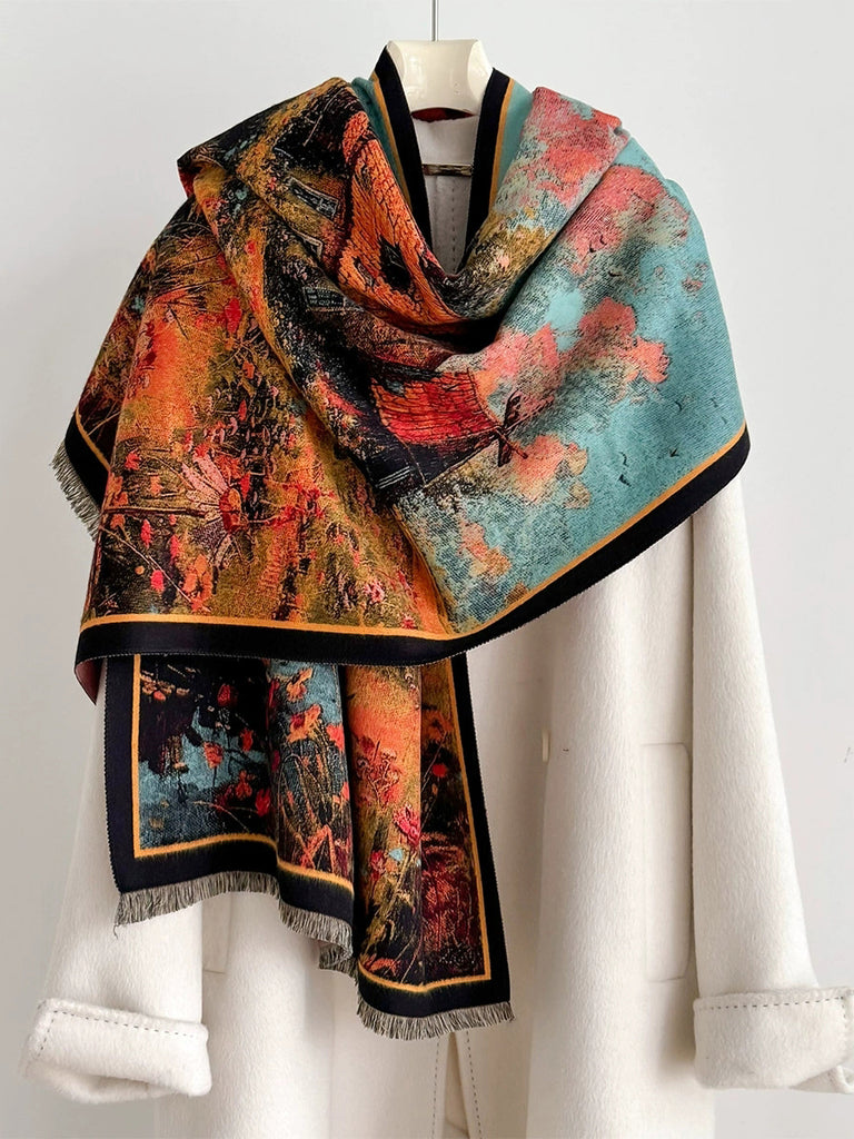 Women Winter Artsy Print Shawl Scarf