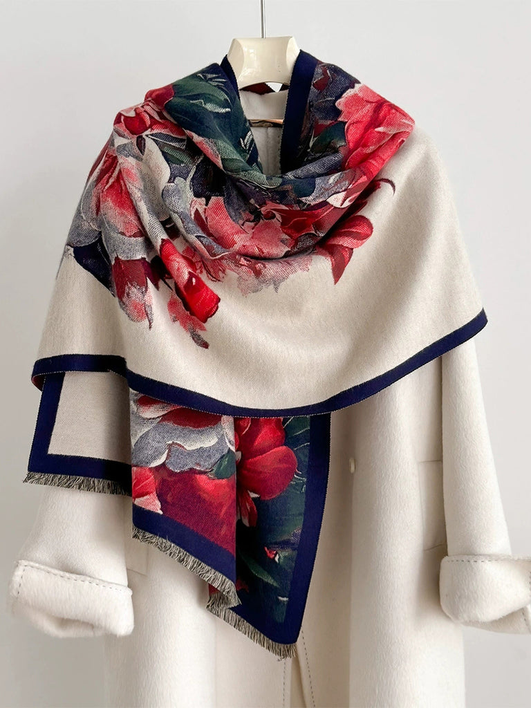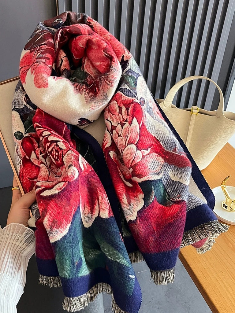 Women Winter Flower Tassel Shawl Scarf