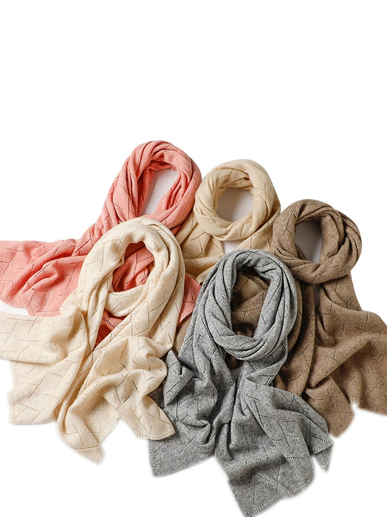 Women Winter Pure Color Hollow Out Knitted Shawl Scarf
