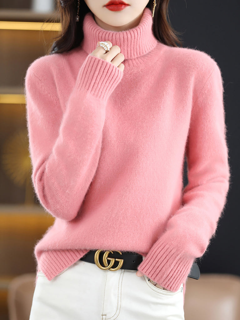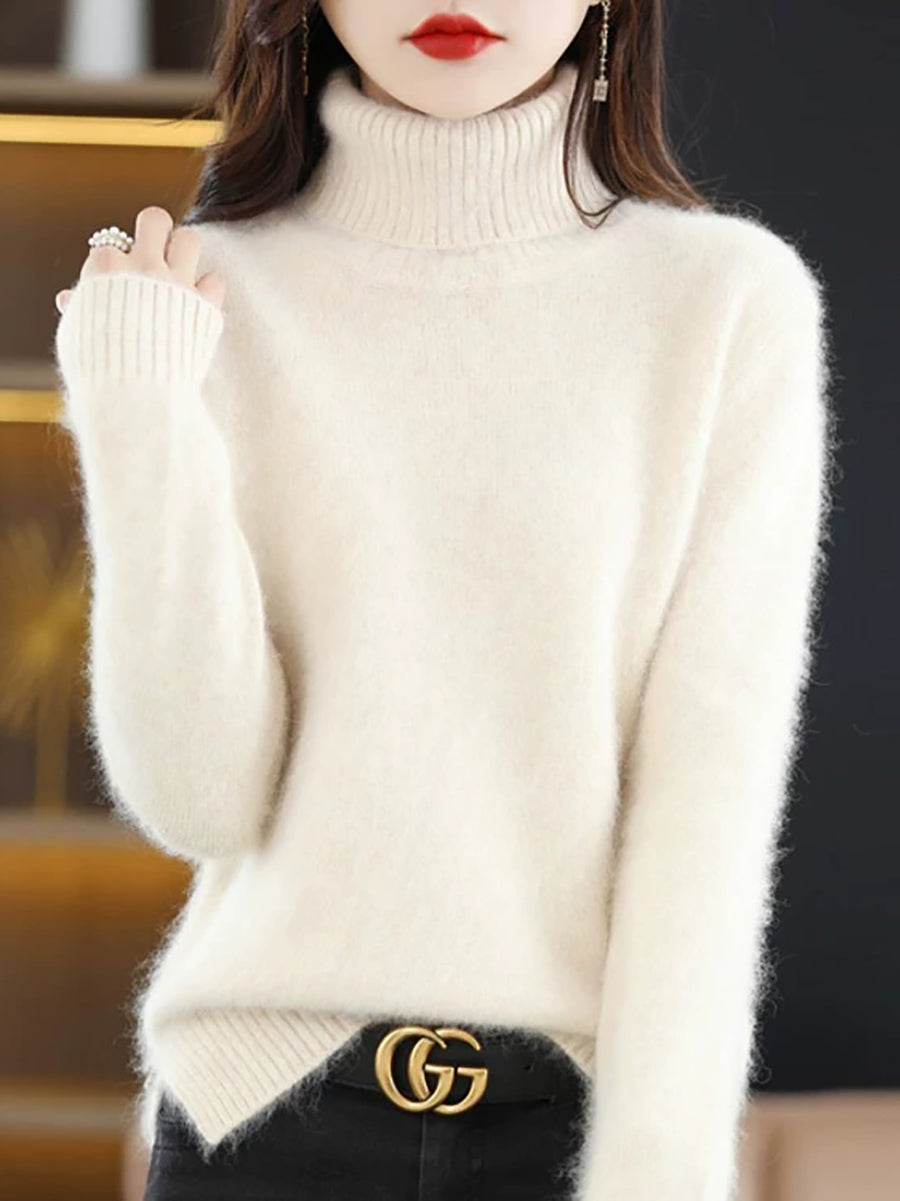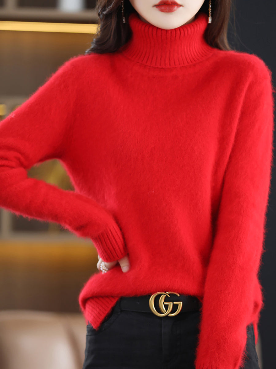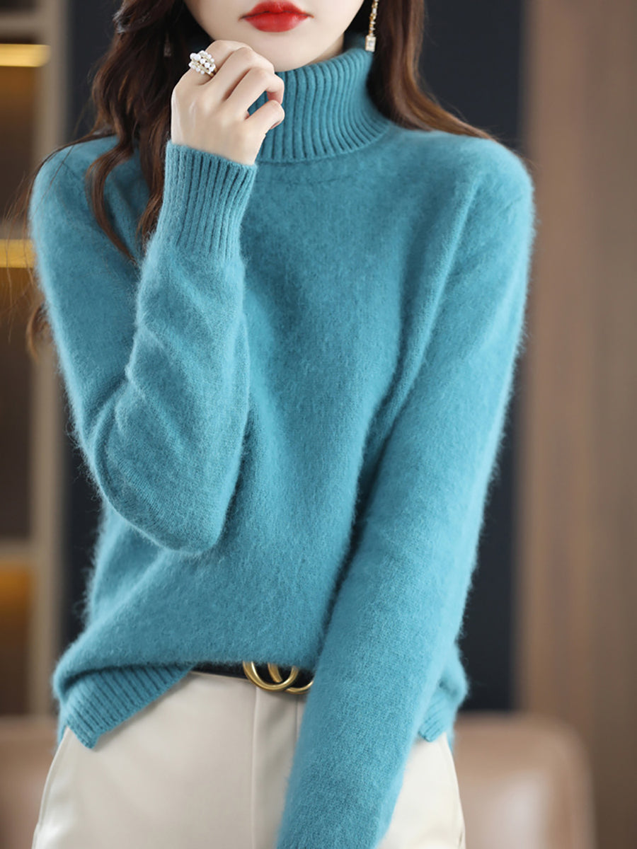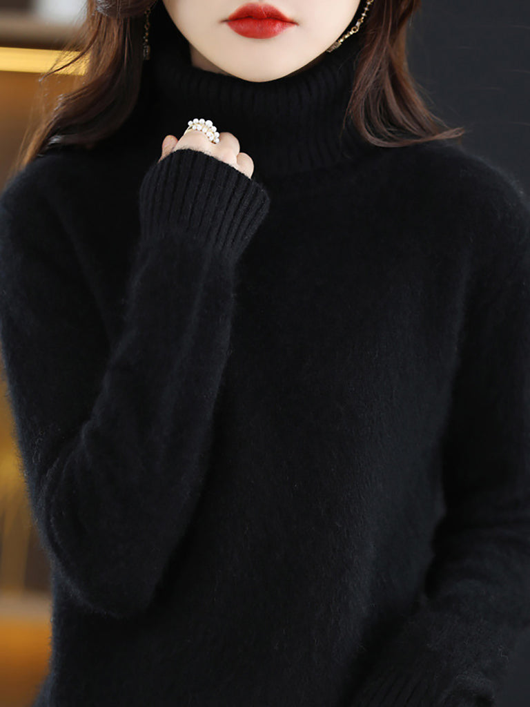 Women Winter Pure Color Turtleneck Sweater