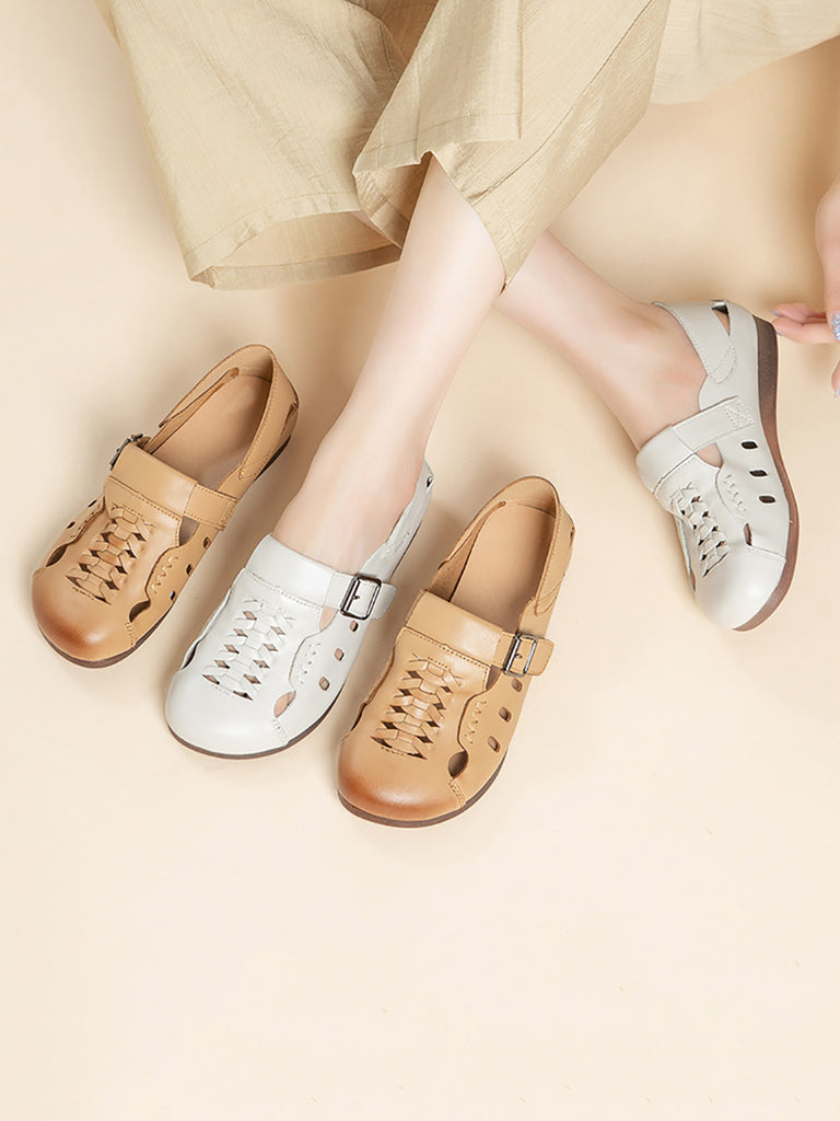 Women Summer Casual Hollow Out Leather Flat Shoes