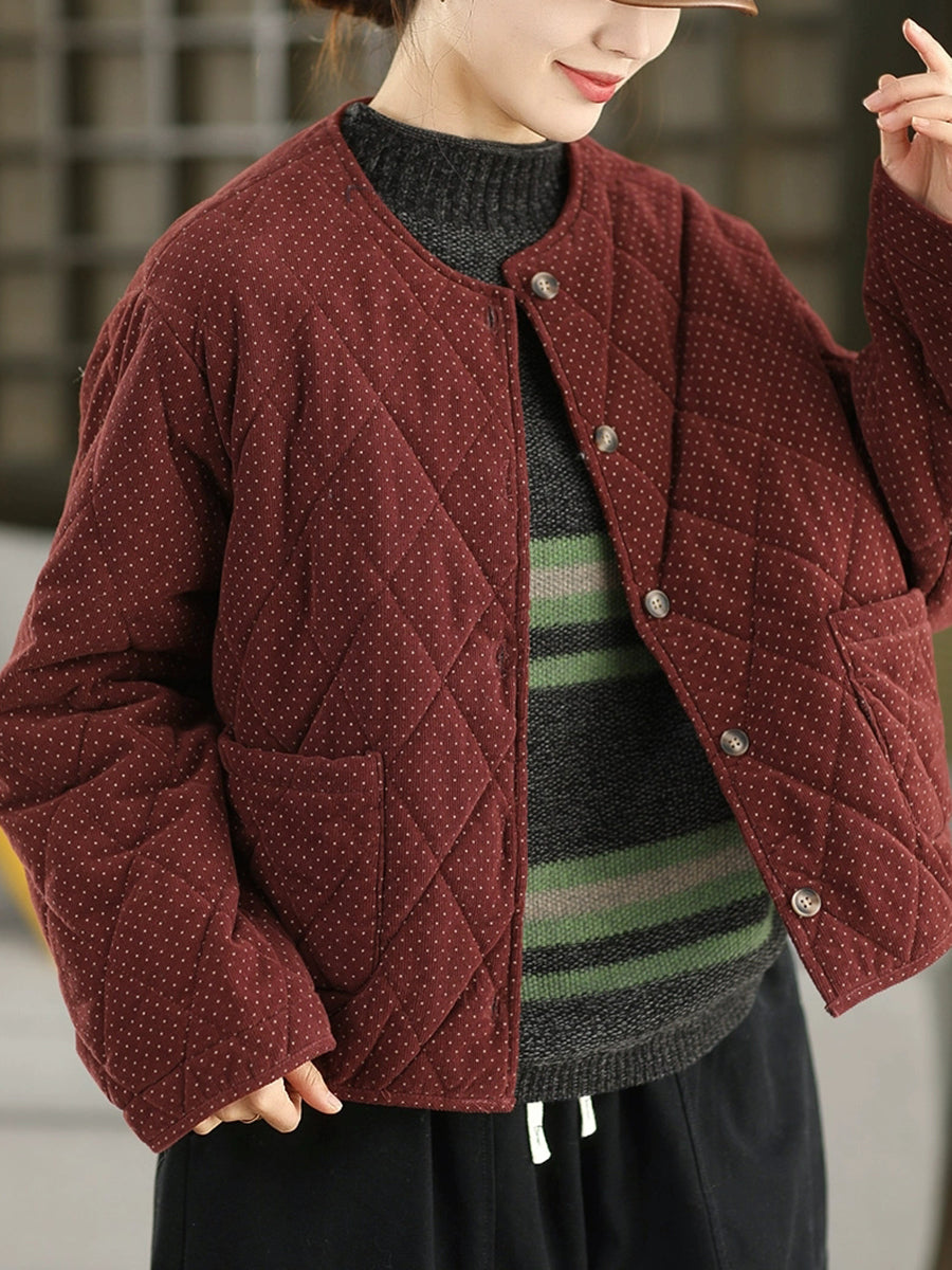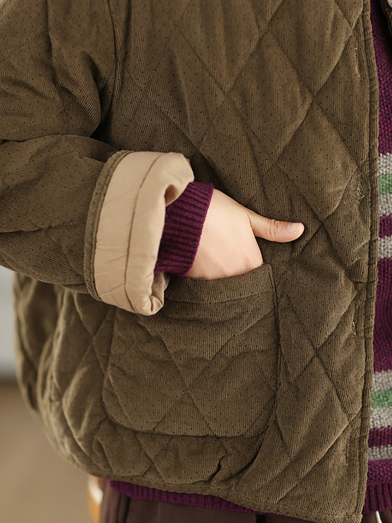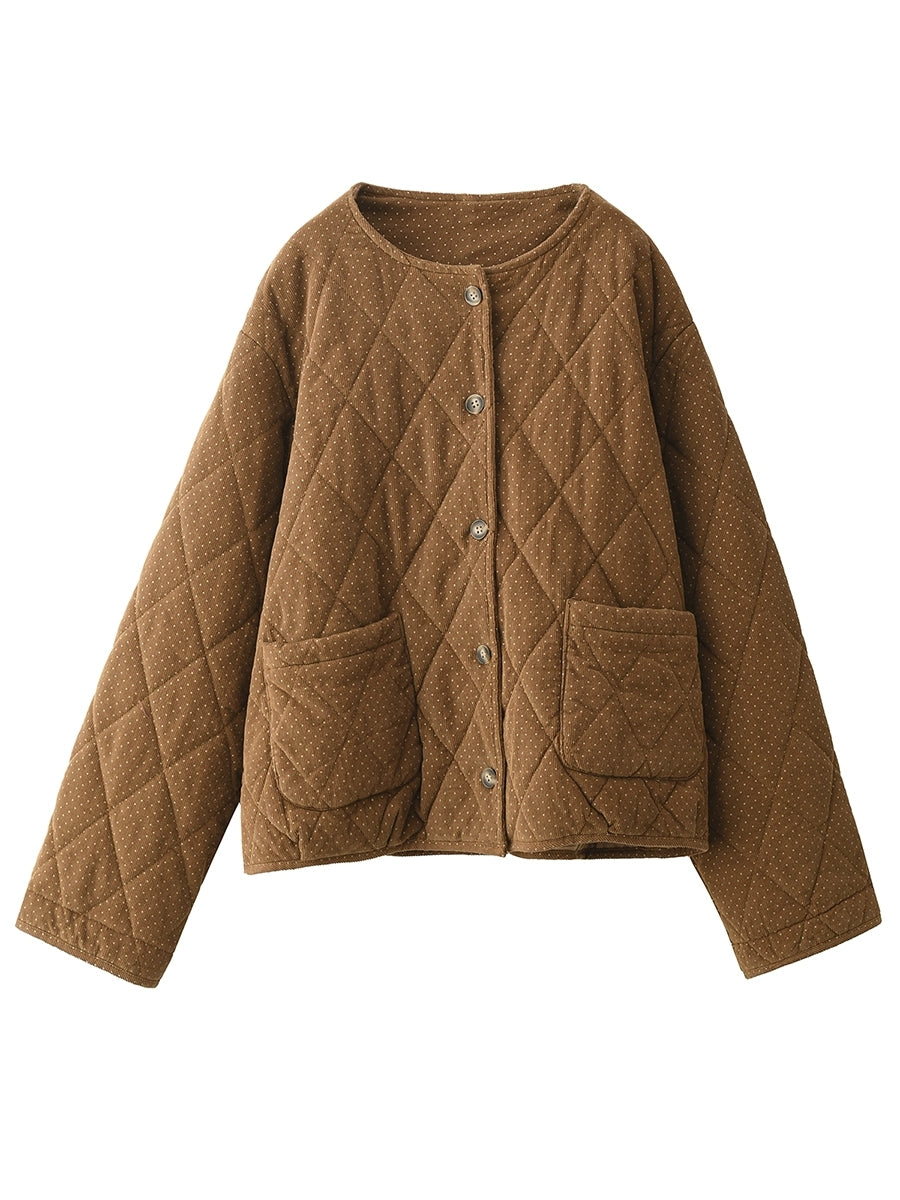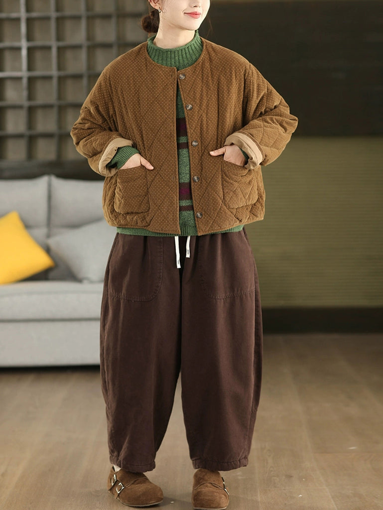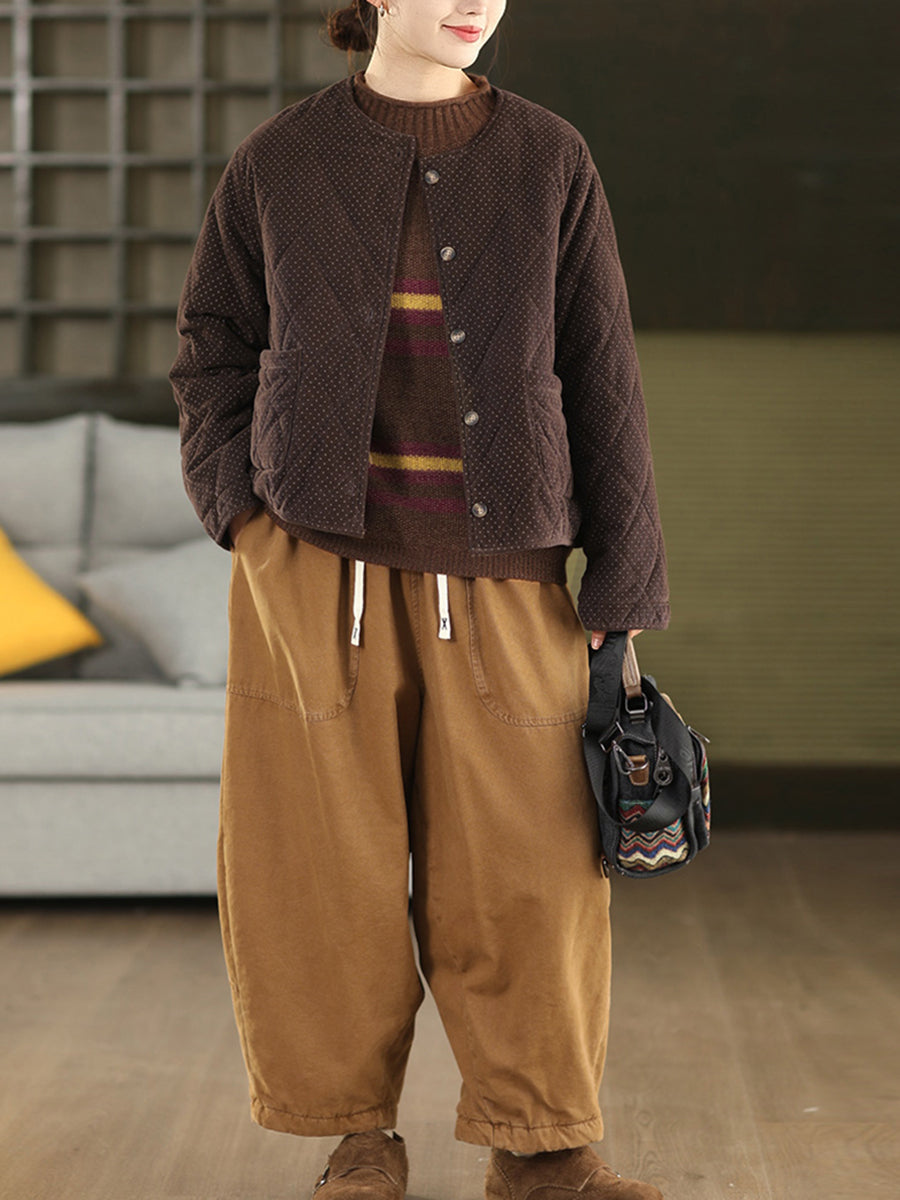 Women Winter Retro Dot O-Neck Corduroy Padded Jacket