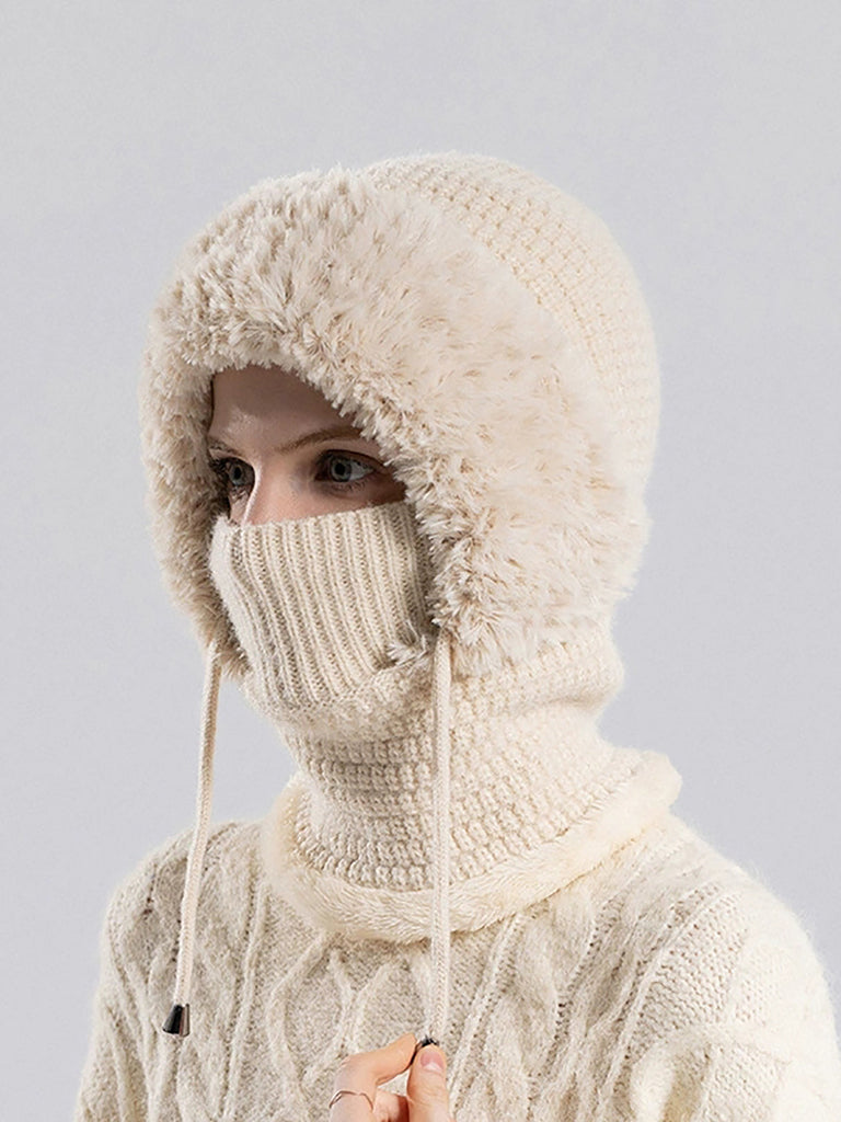Women Autumn Casual Pure Color Knitted Hooded Sweater