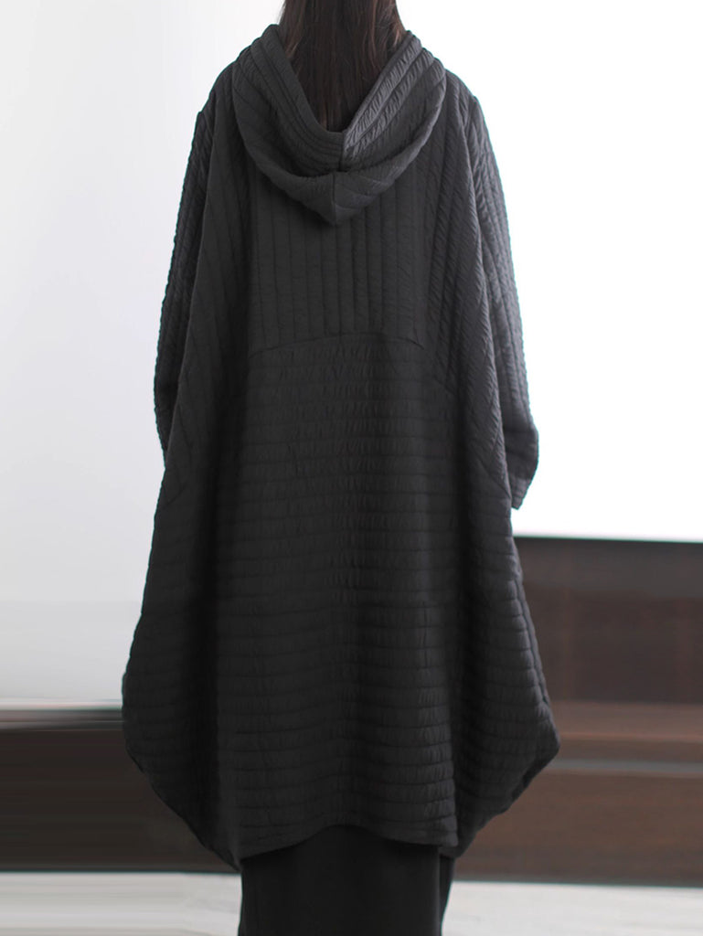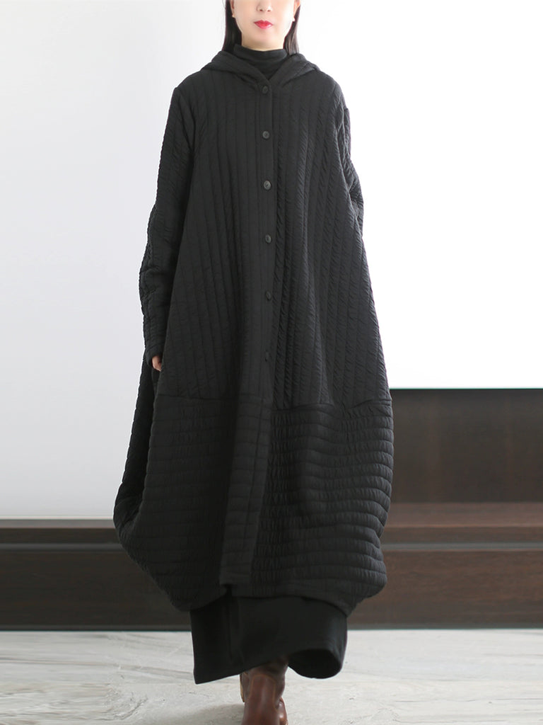 Women Vintage Winter Pure Color Hooded Padded Coat