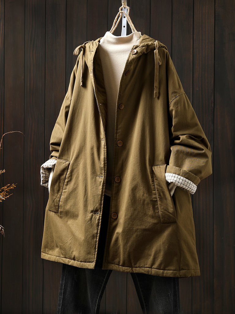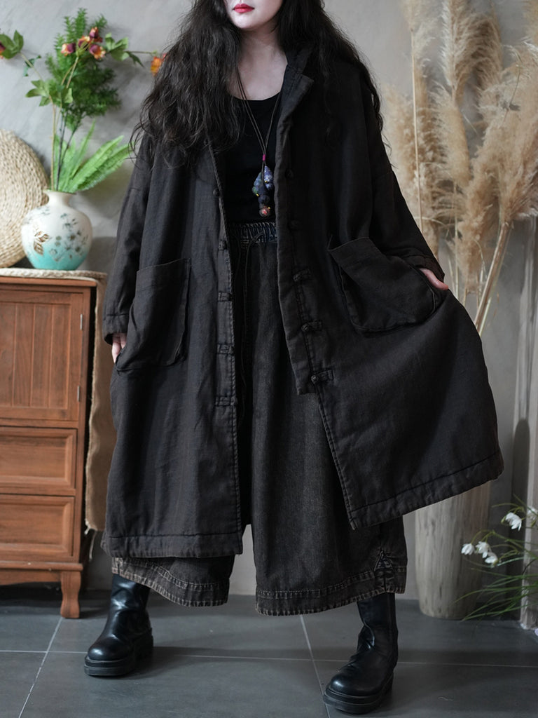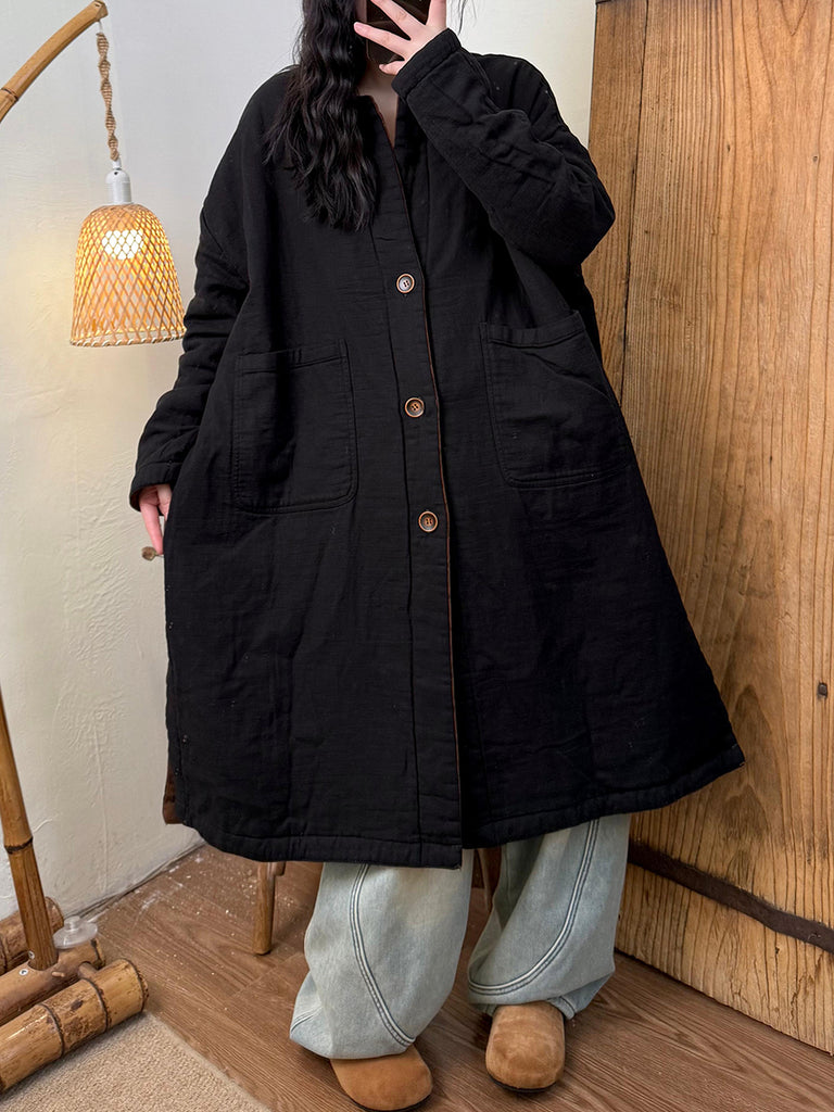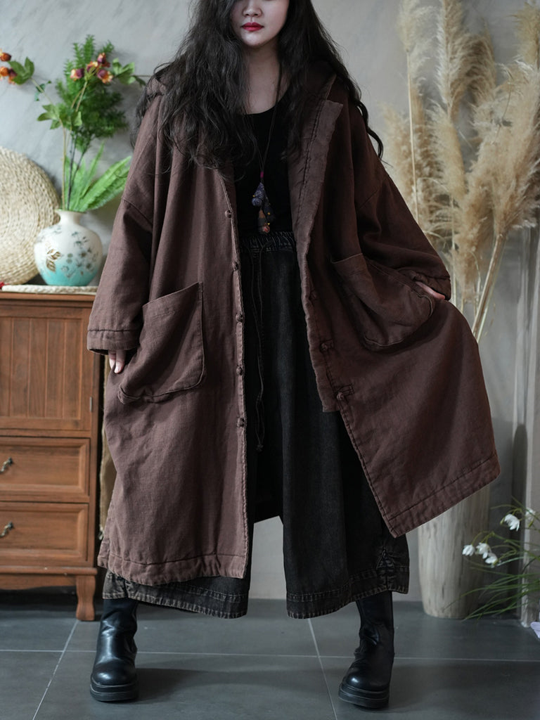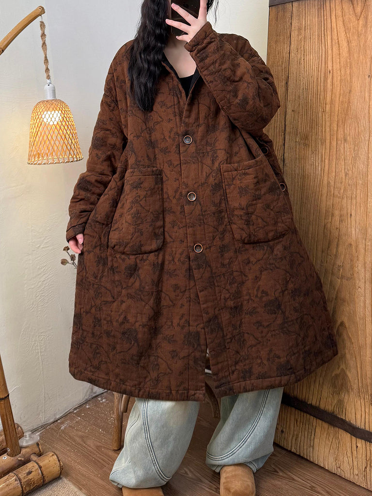 Women Vintage Winter Flower Fleece Spliced Cotton O-Neck Coat