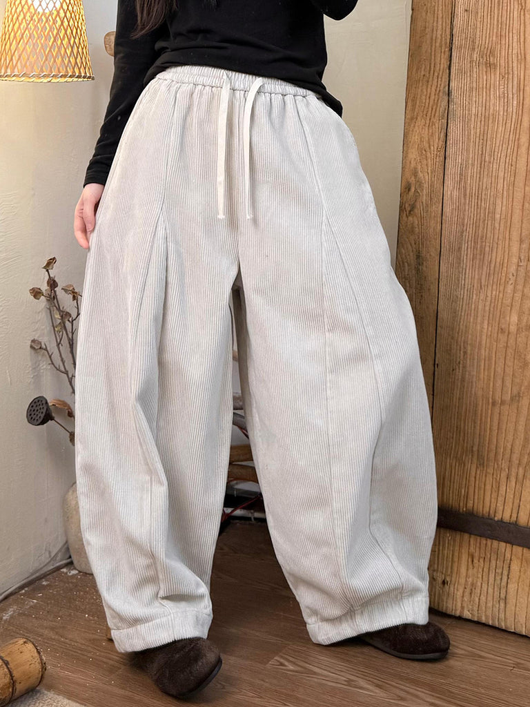 Plus Size Spring Retro Corduroy Solid Color Pants