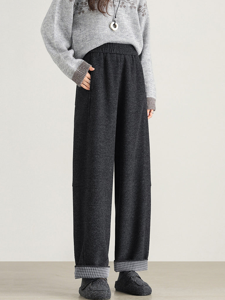 Women Winter Casual Pure Color Fleece-lined Straight Pants