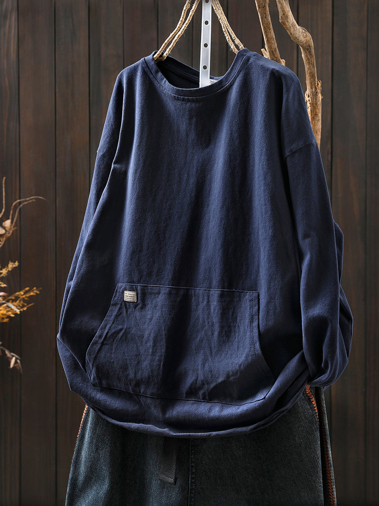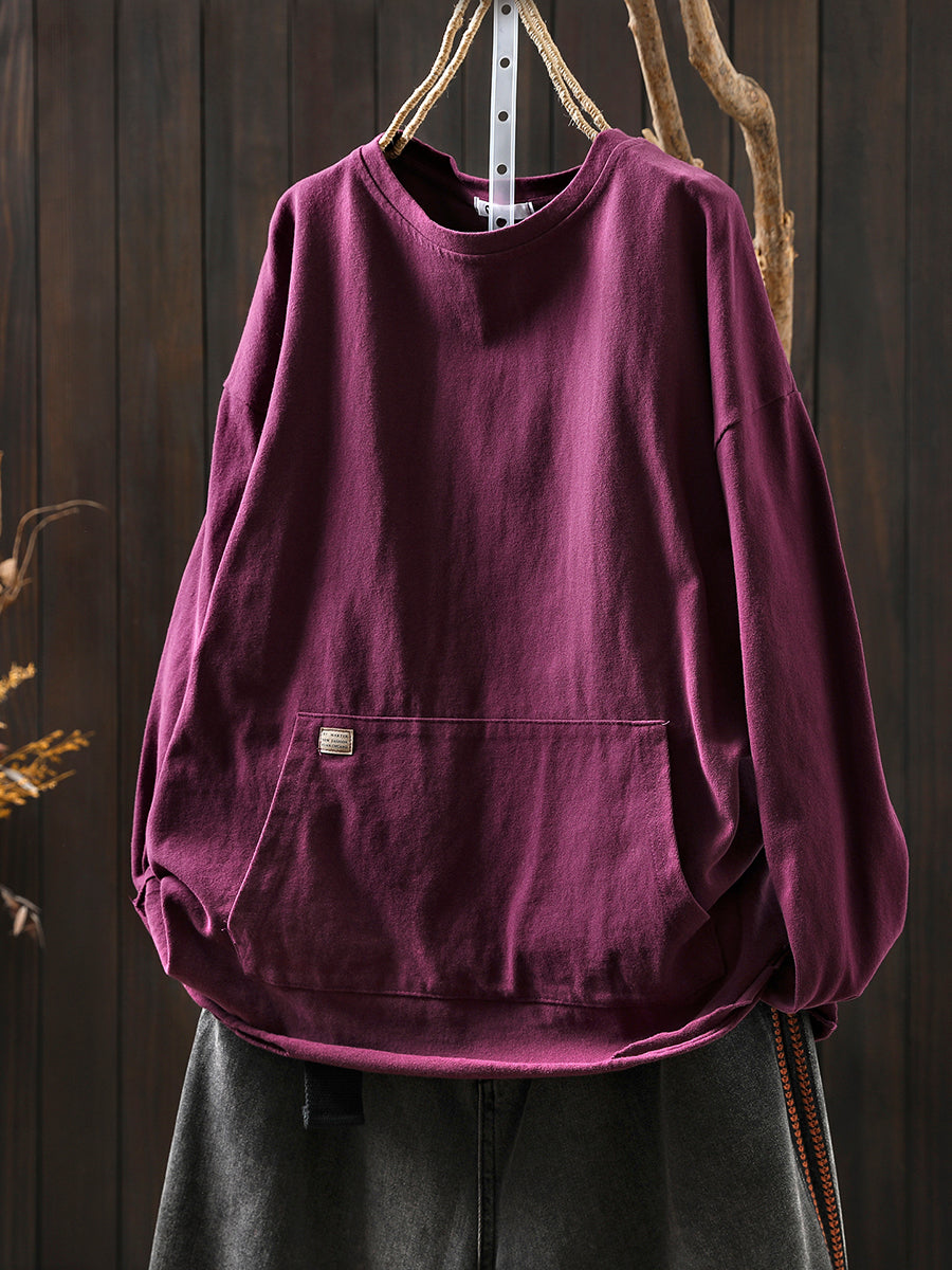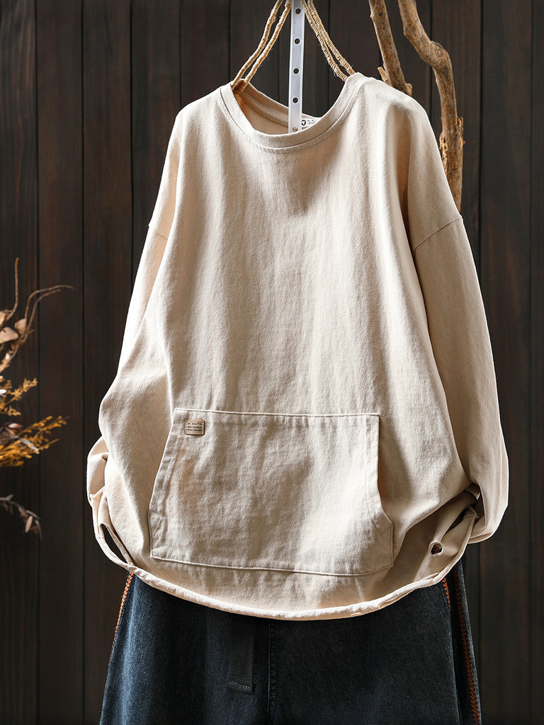 Women Autumn Casual Pure Color O-Neck Blouse