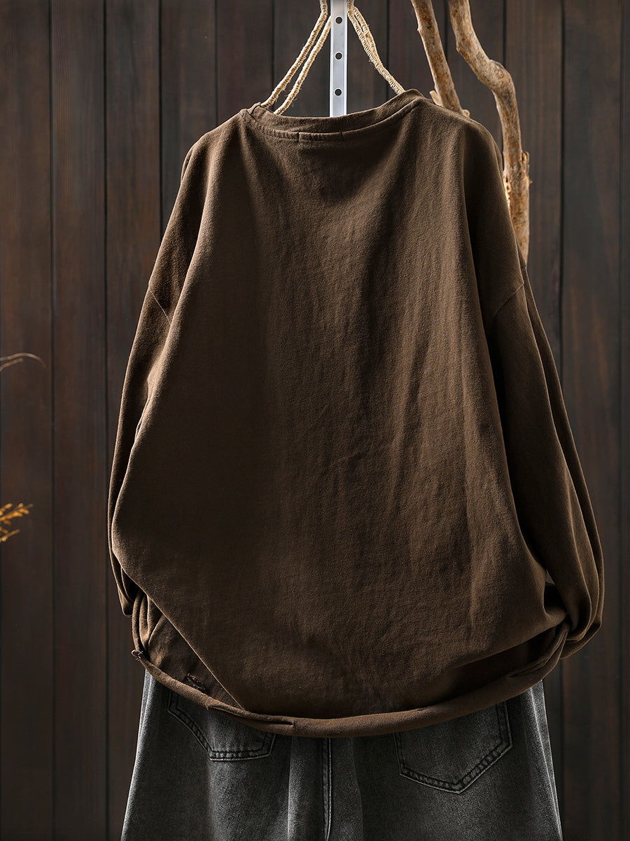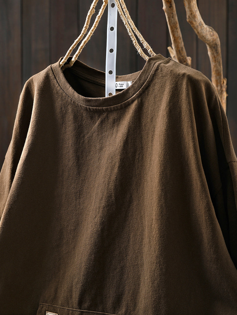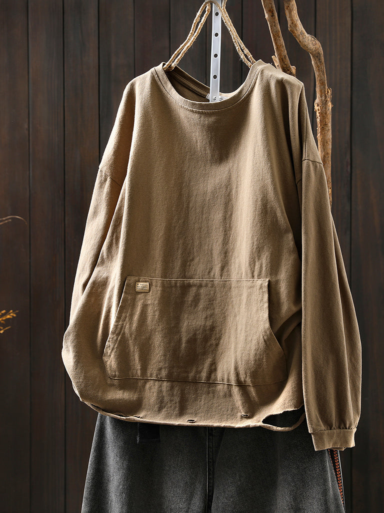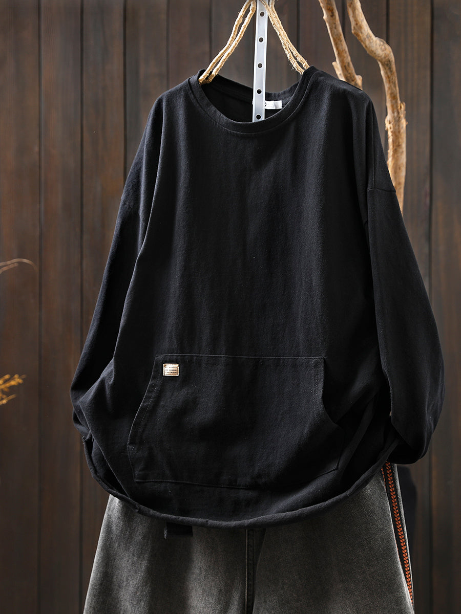 Women Autumn Casual Pure Color O-Neck Blouse