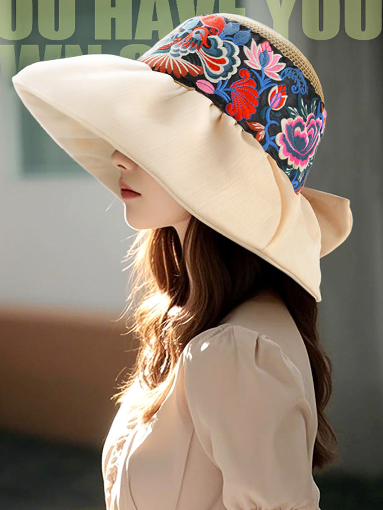 Women Ethnic Flower Embroidery Weave Hat