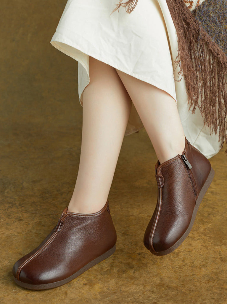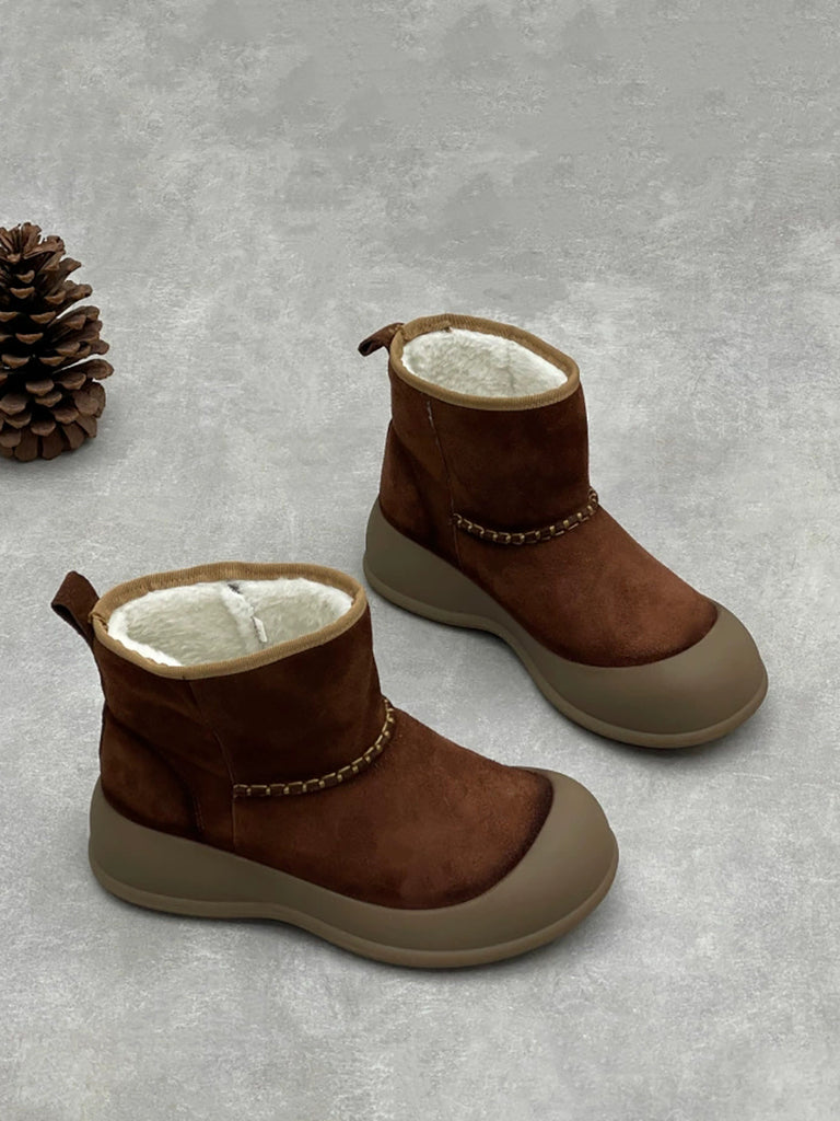 Women Vintage Genuine Leather Spliced Fleece-lined Ankle Boots