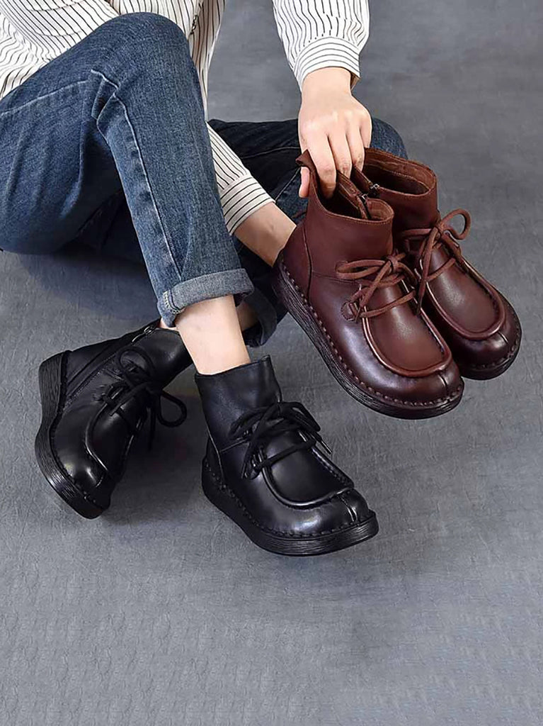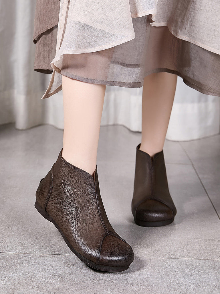 Women Vintage Genuine Leather Spliced Ankle Boots
