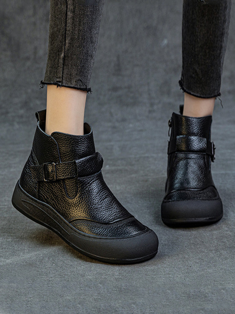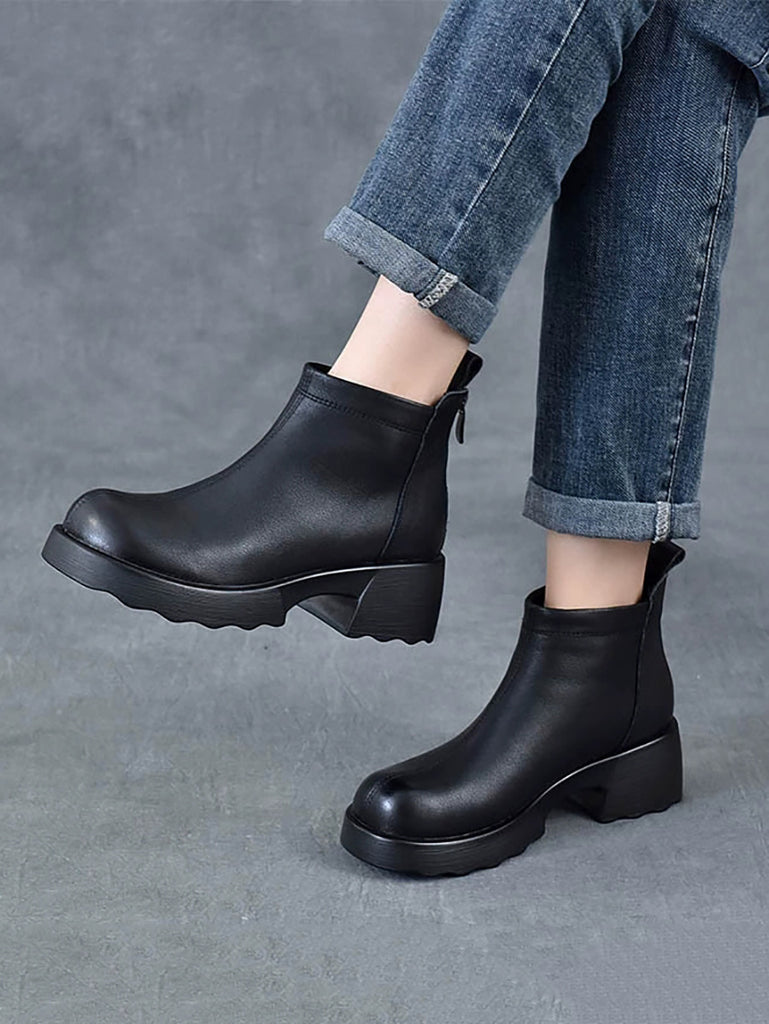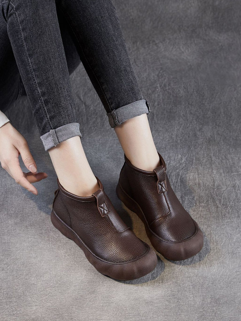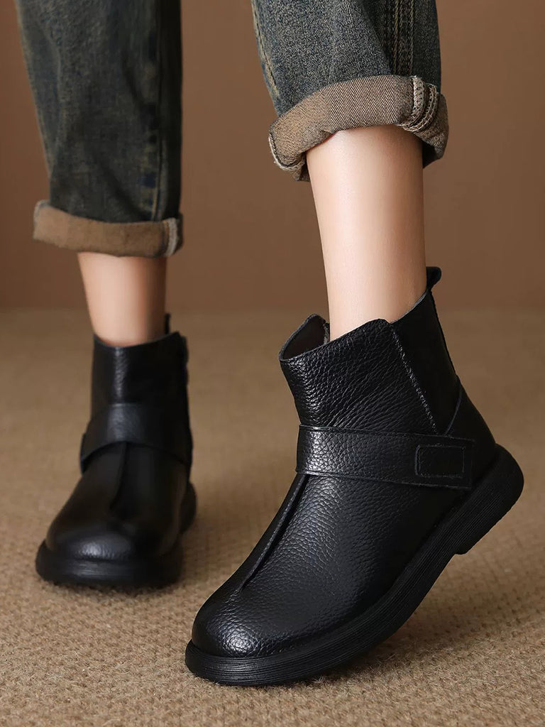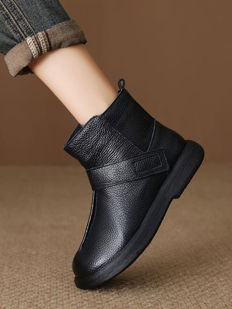 Women Vintage Pure Color Leather Fleece-lined Boots