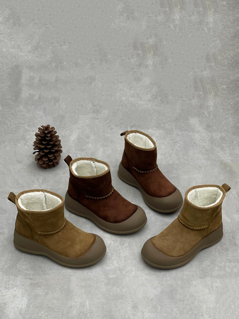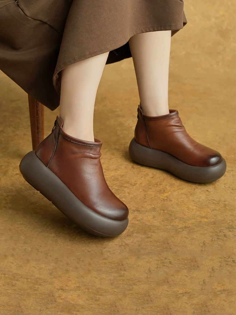 Women Casual Vintage Genuine Leather Fleece-lined Boots