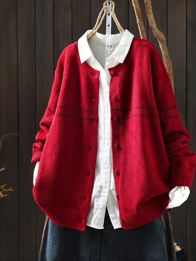 Women Autumn Pure Color Wool O-Neck Cardigan