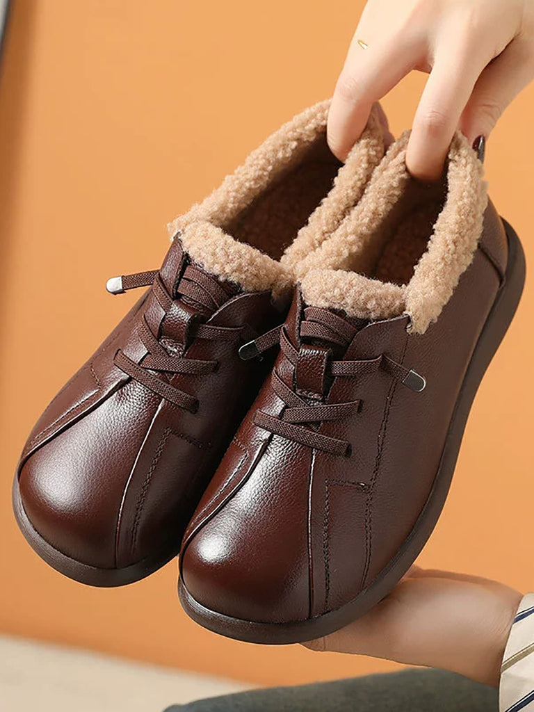 Women Winter Casual Pure Color O-Neck Fleece Coat