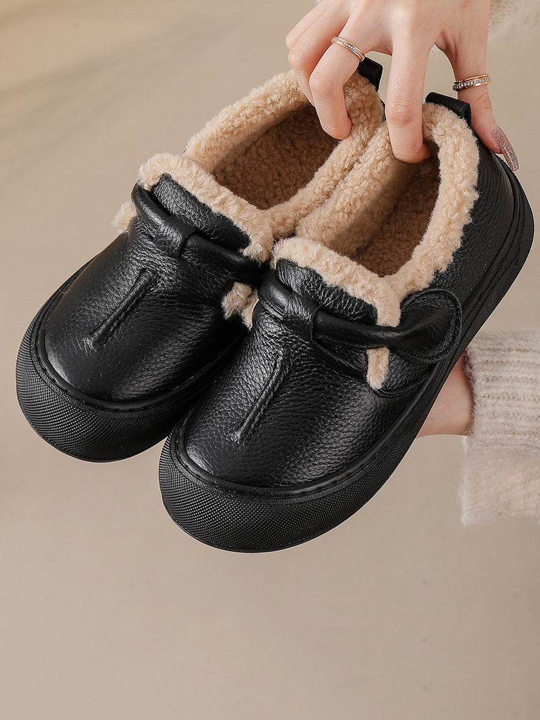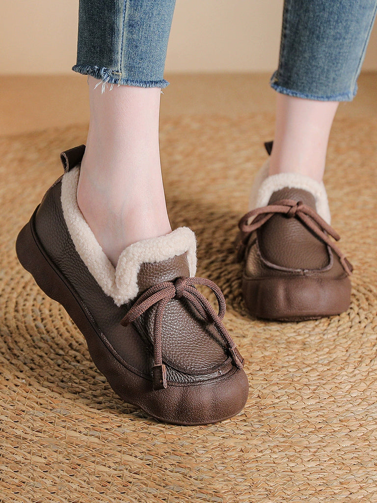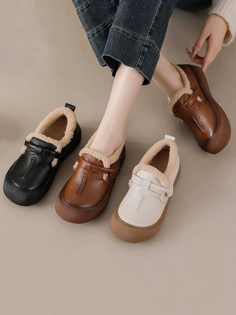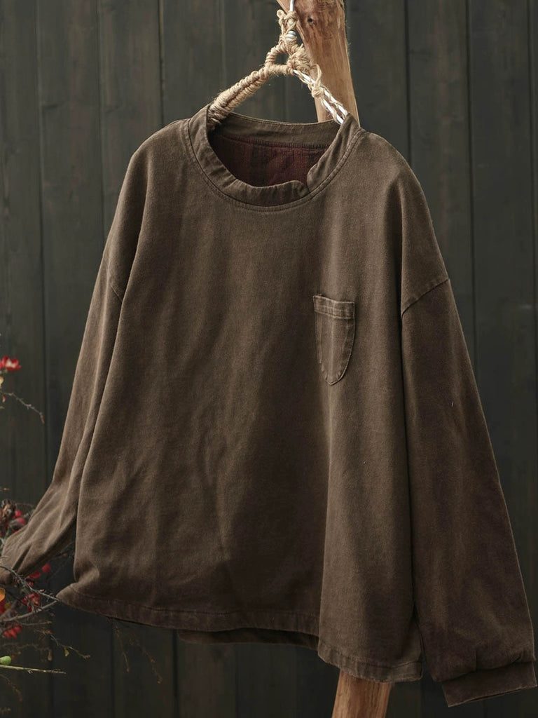 Women Winter Artsy Pure Color O-Neck Cotton Blouse