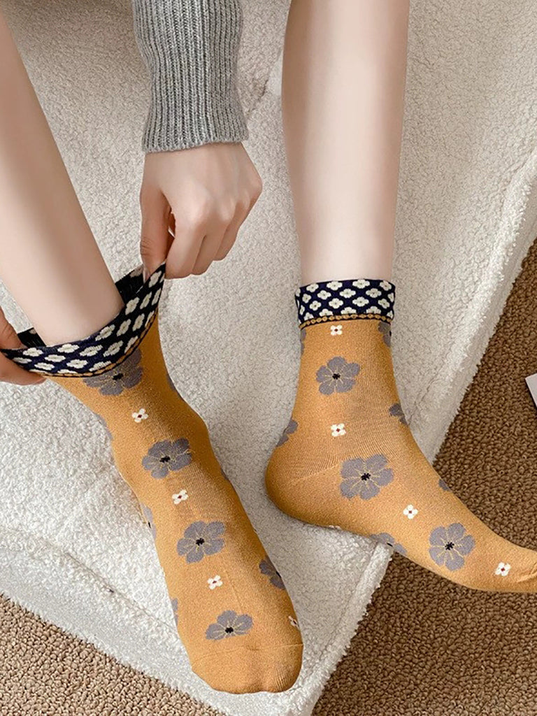 5 Pairs Women Artsy Vintage Leaf Cotton Socks