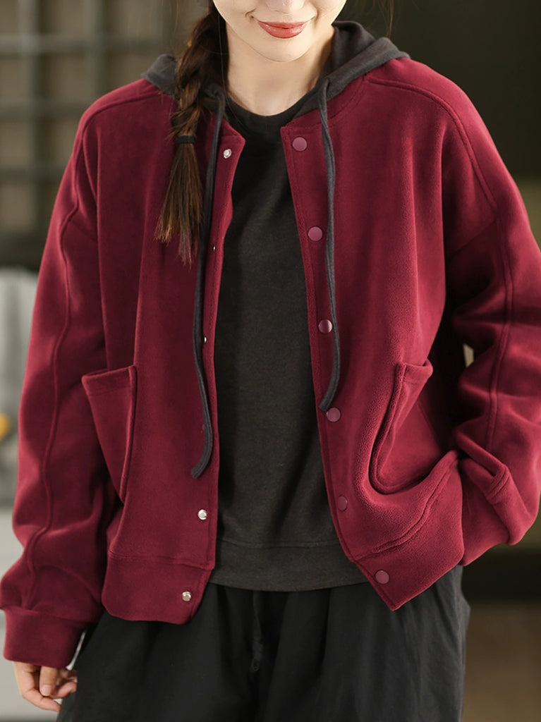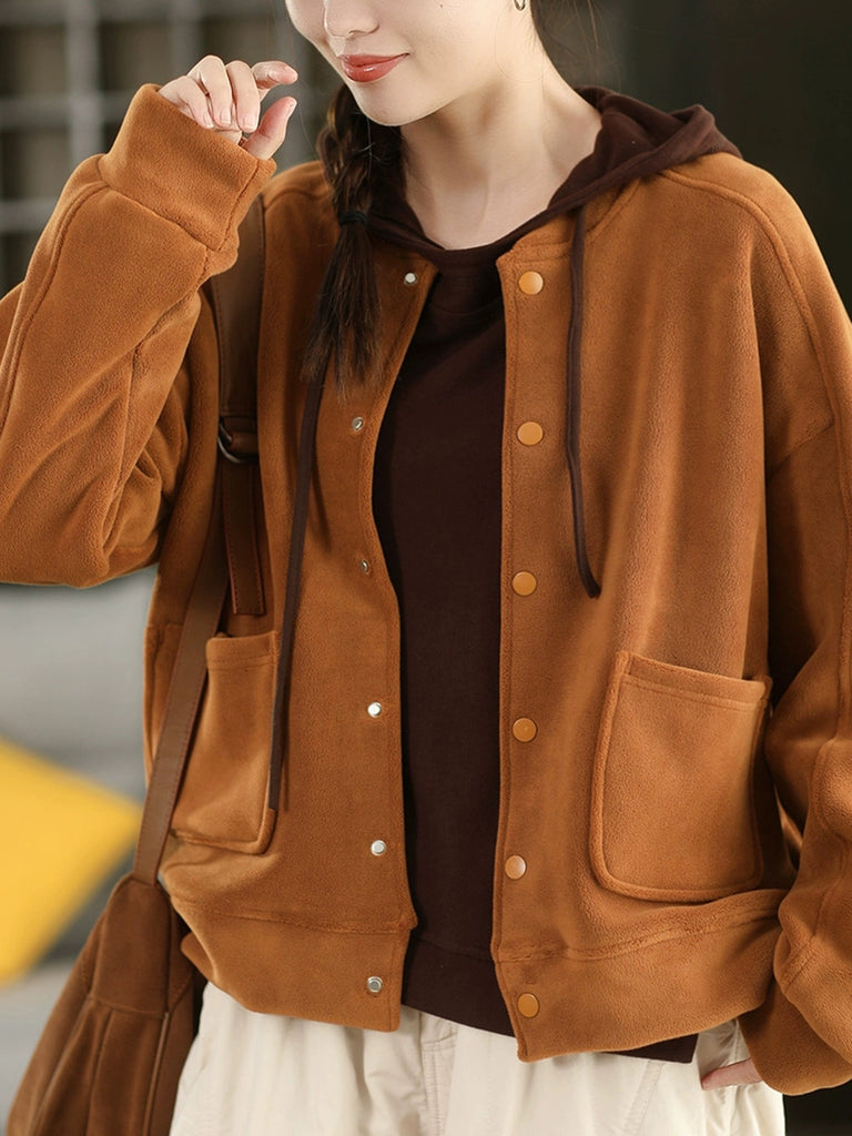 Women Artsy Autumn Pure Color Fleece-lined Hoodie