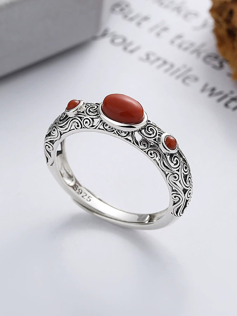 Women Vintage S925Silver Red Agate Adjustable Ring