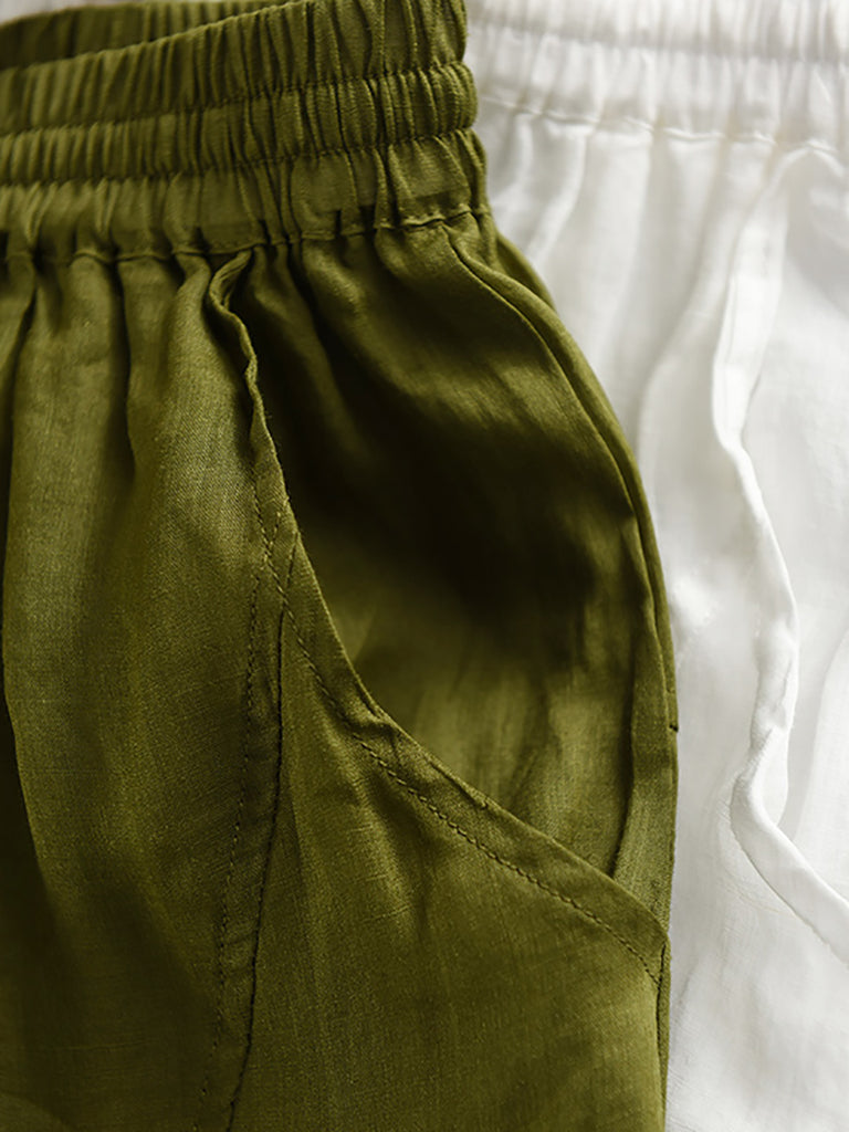 Women Summer Artsy Pure Color 100%Ramie Loose Bloomers