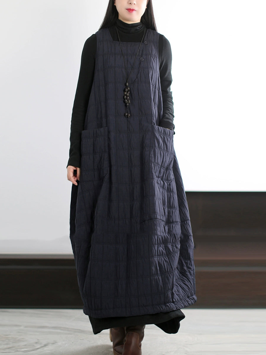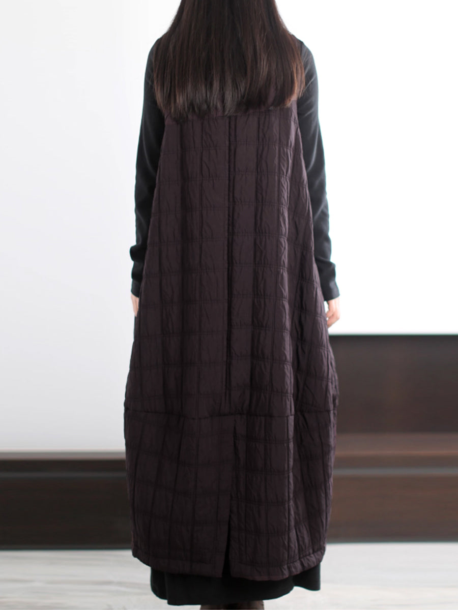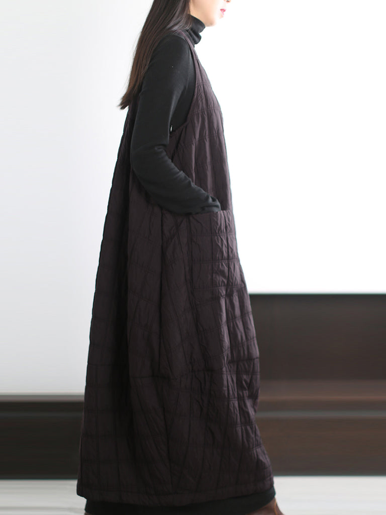 Plus Size Women Autumn Casual Pure Color Padded Vest Dress