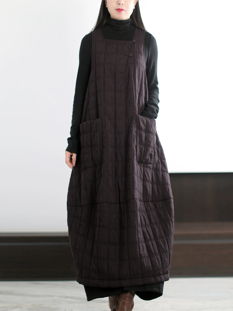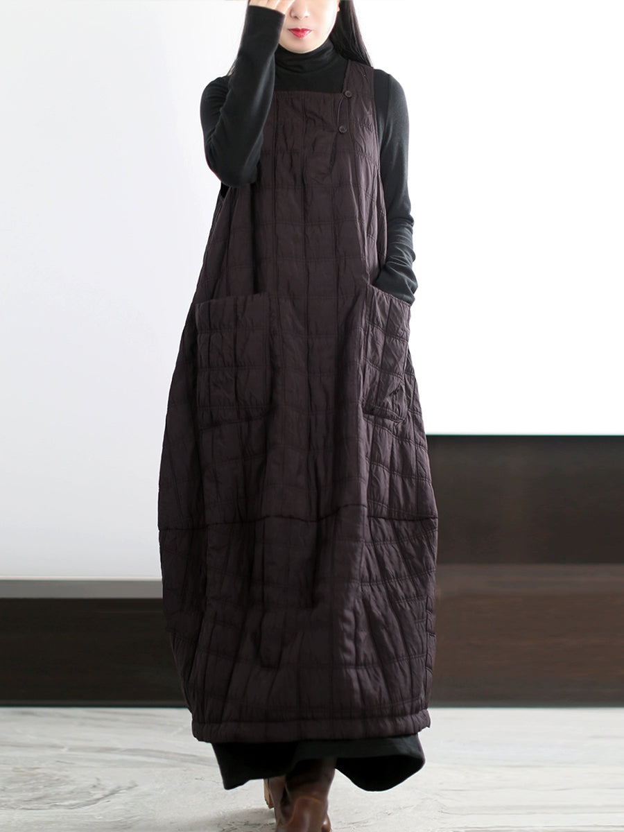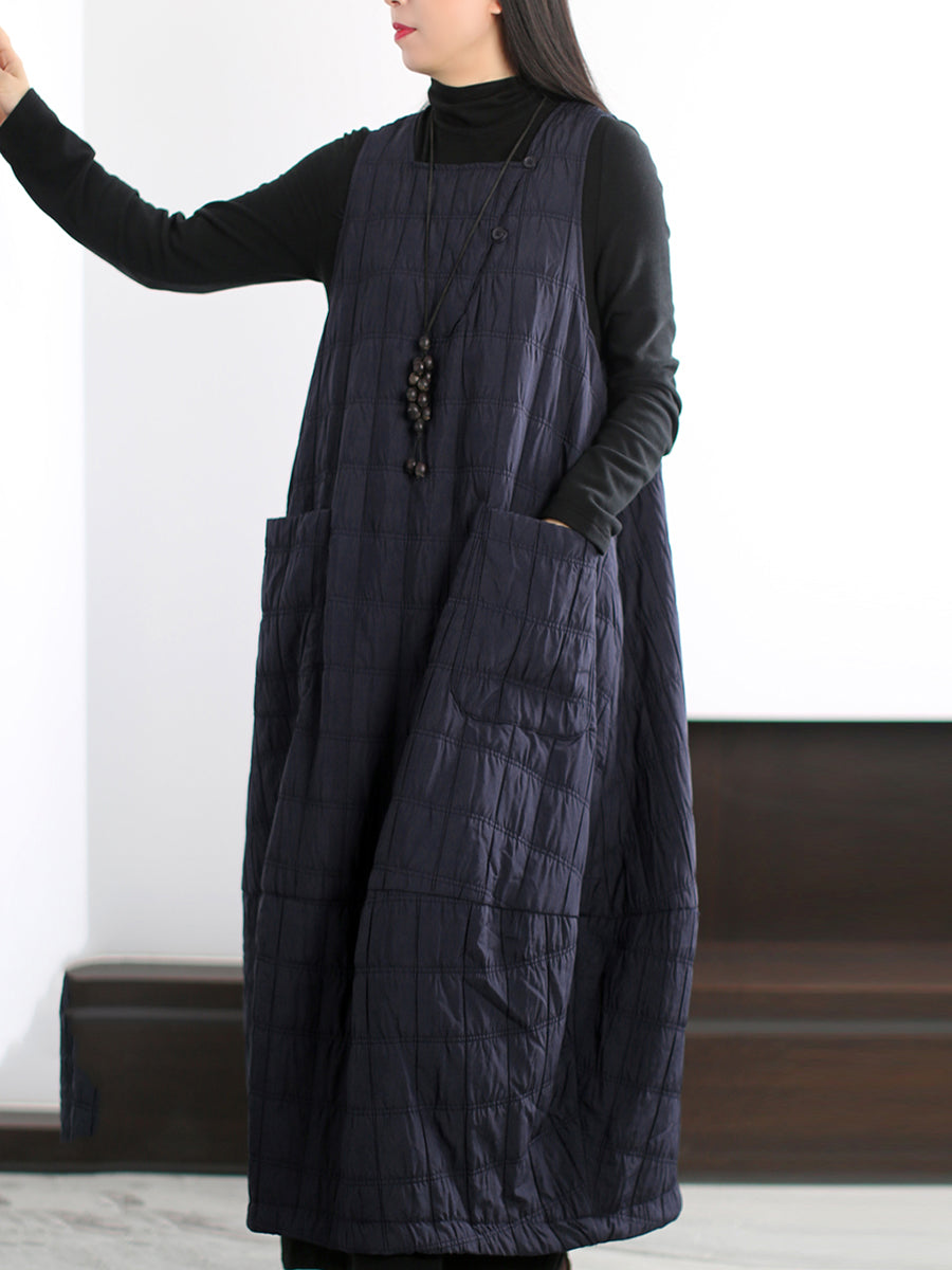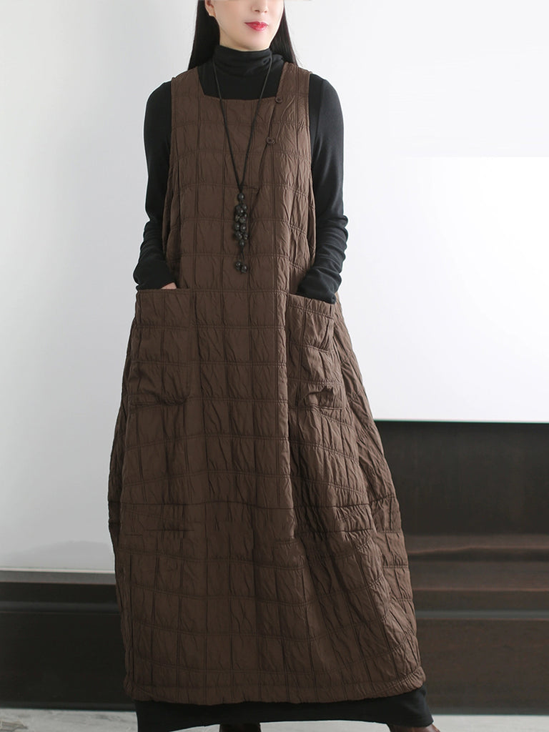 Plus Size Women Autumn Casual Pure Color Padded Vest Dress