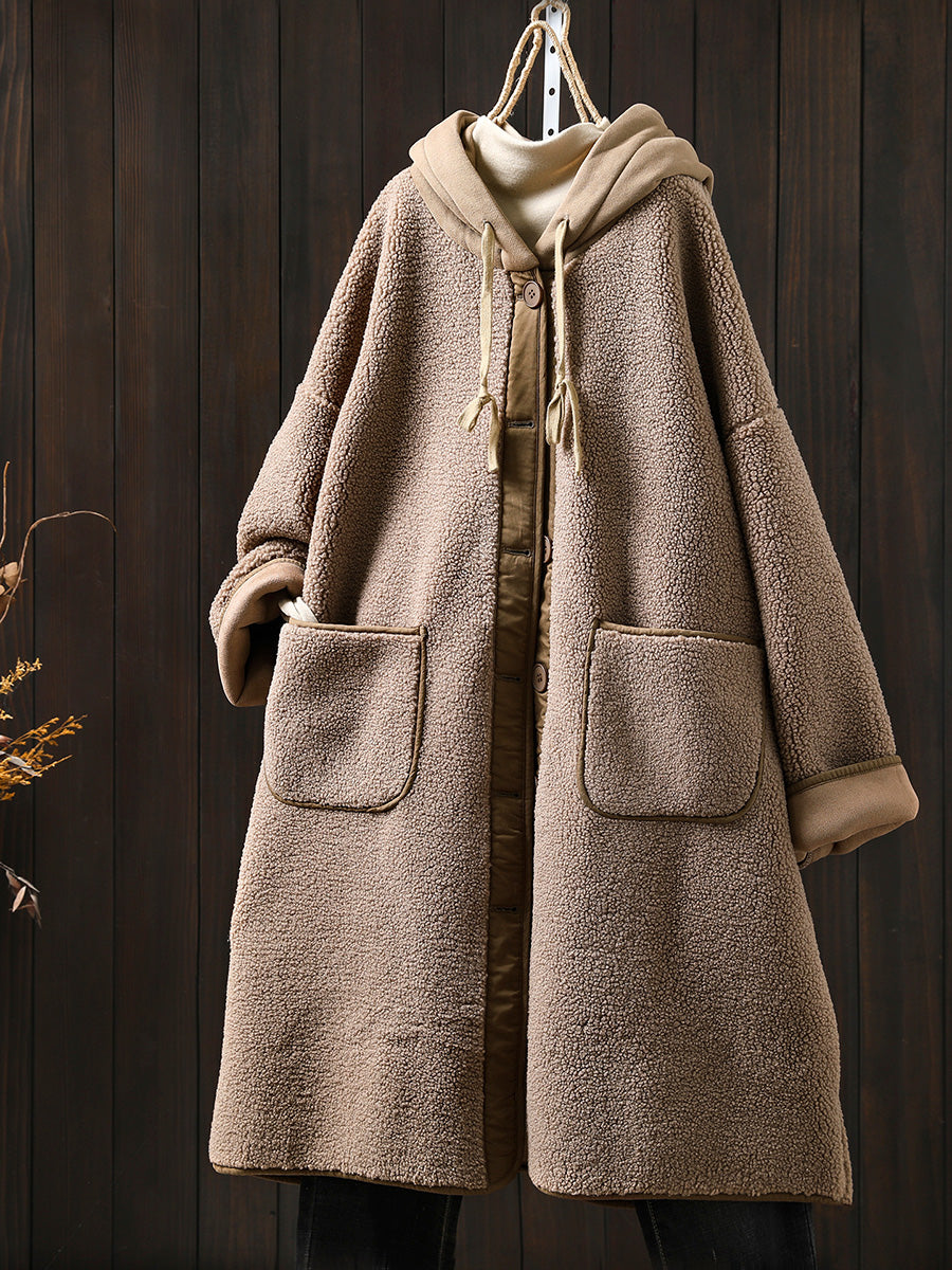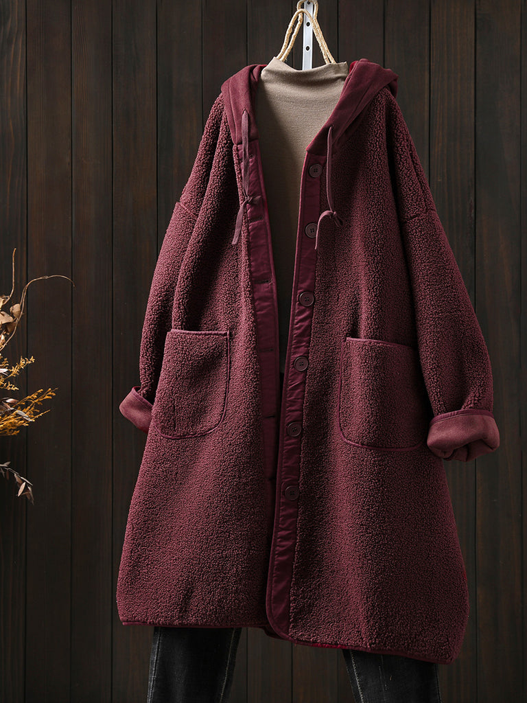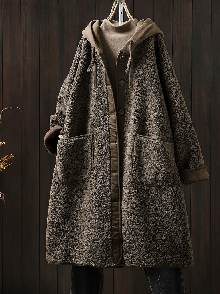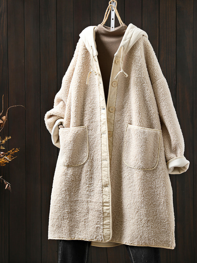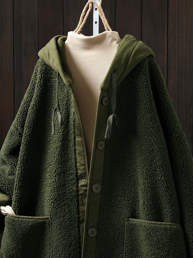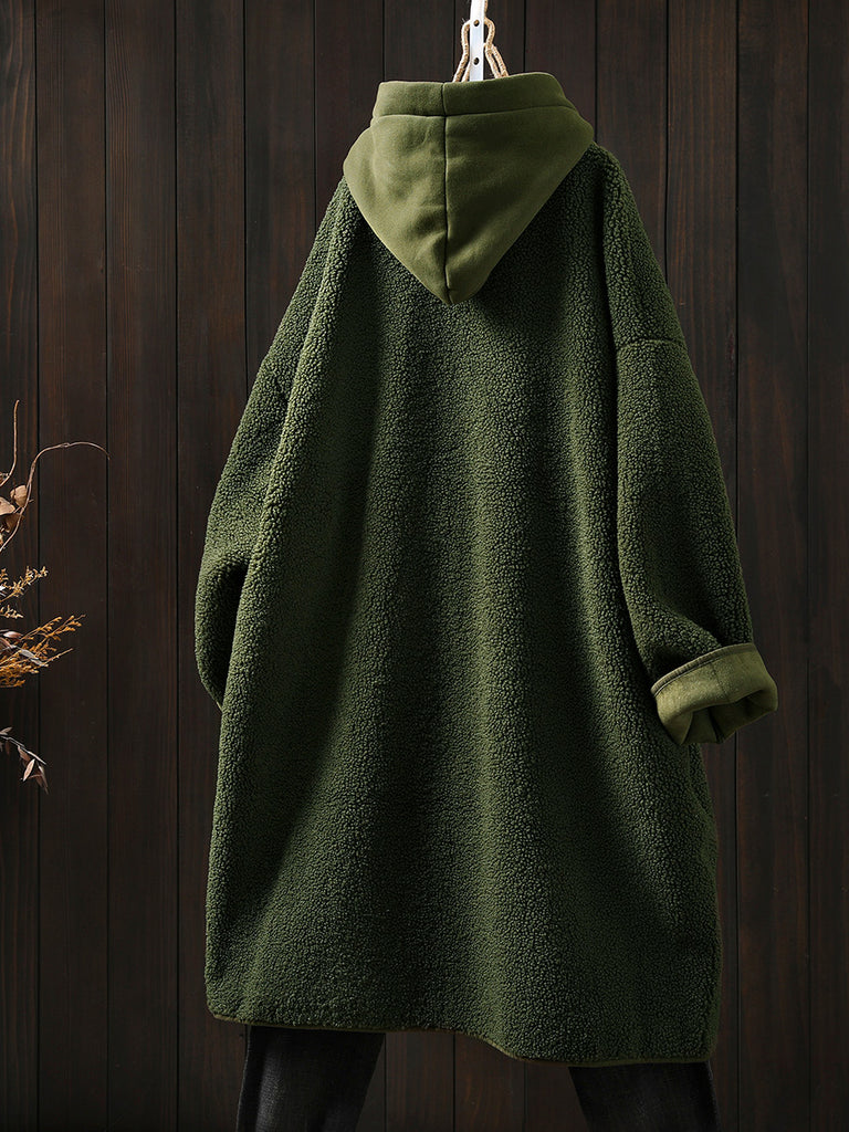 Plus Size Women Winter Warm Fleece Hooded Coat