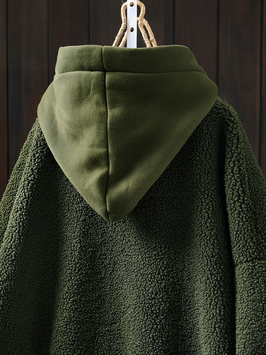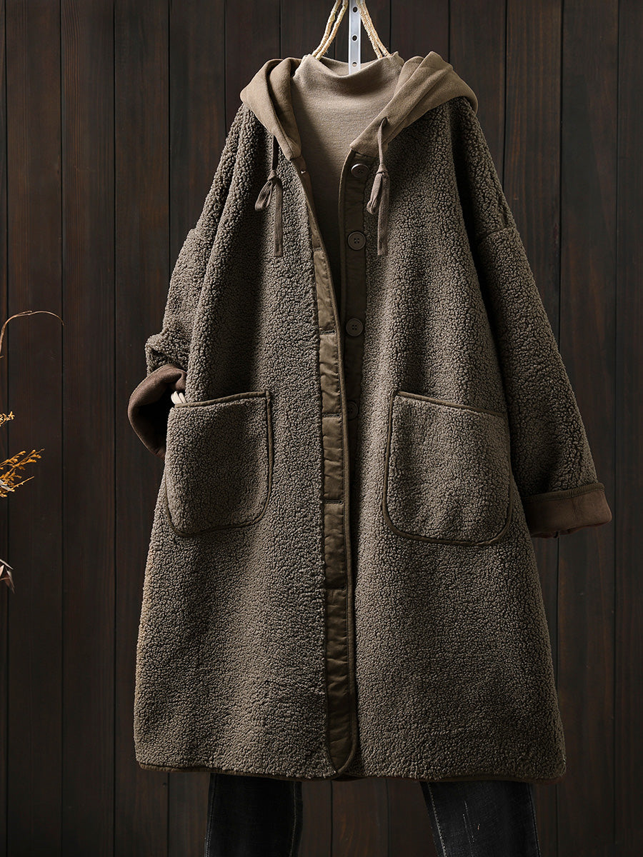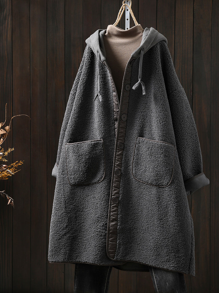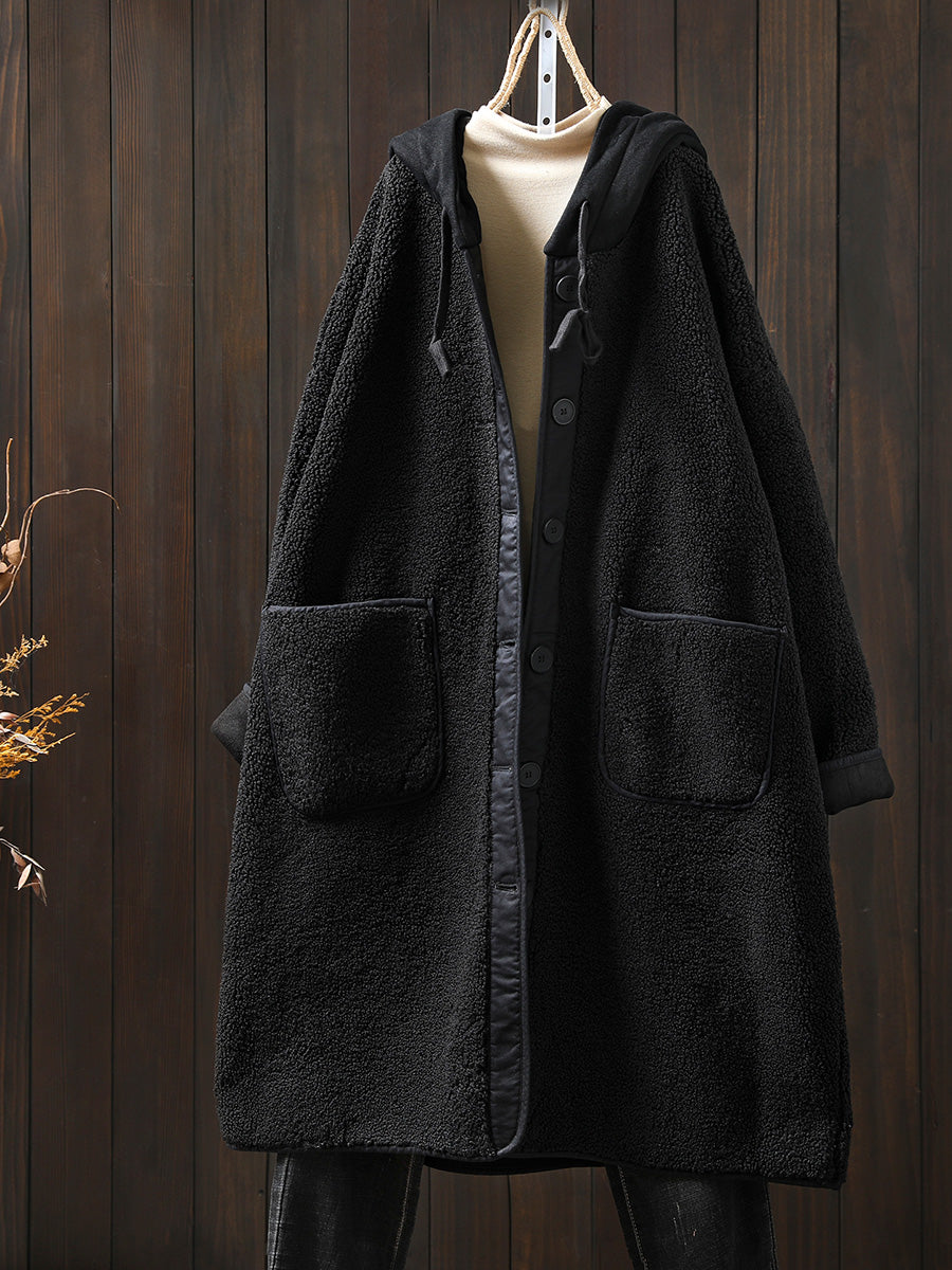 Plus Size Women Winter Warm Fleece Hooded Coat