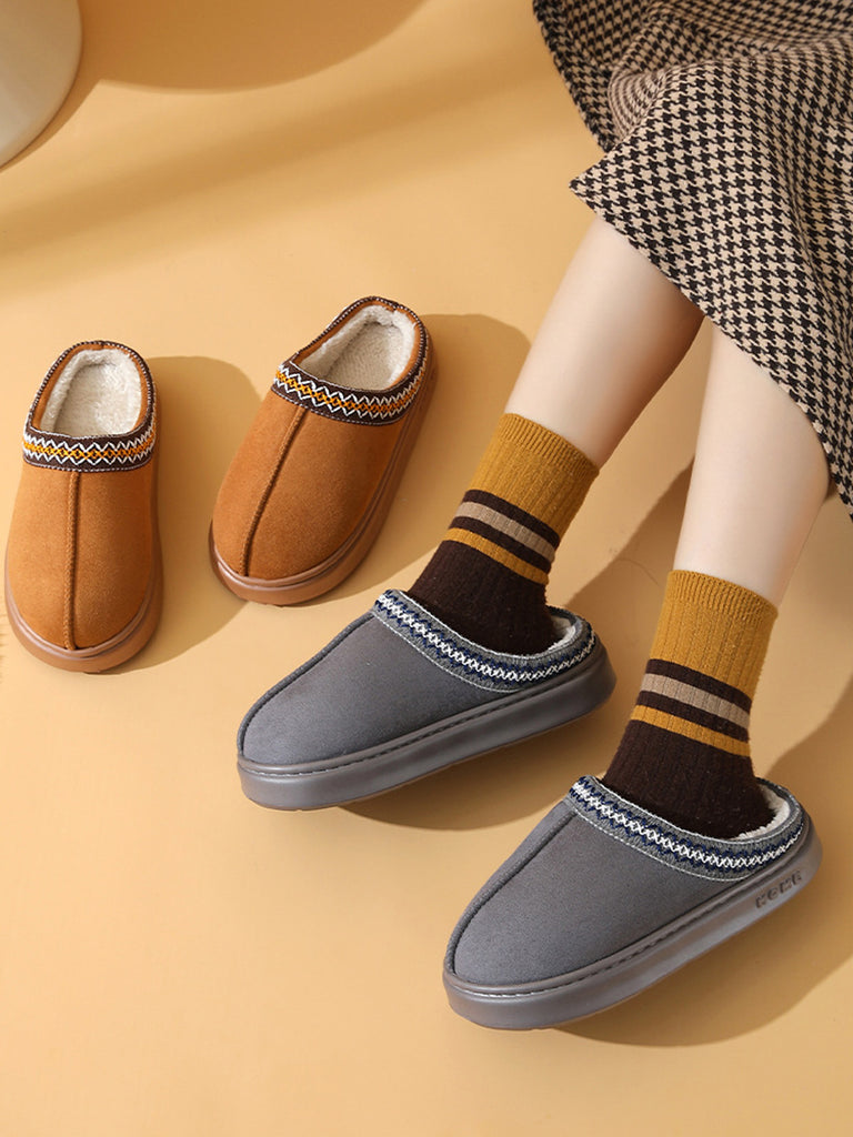 Winter Couple Pure Color Outdoor Fleece-lined Shoes