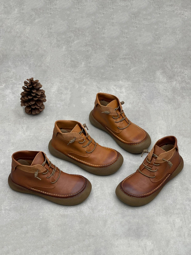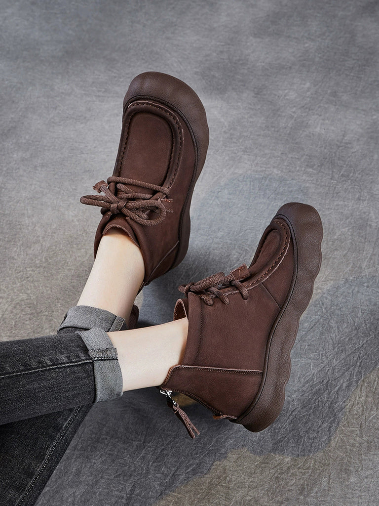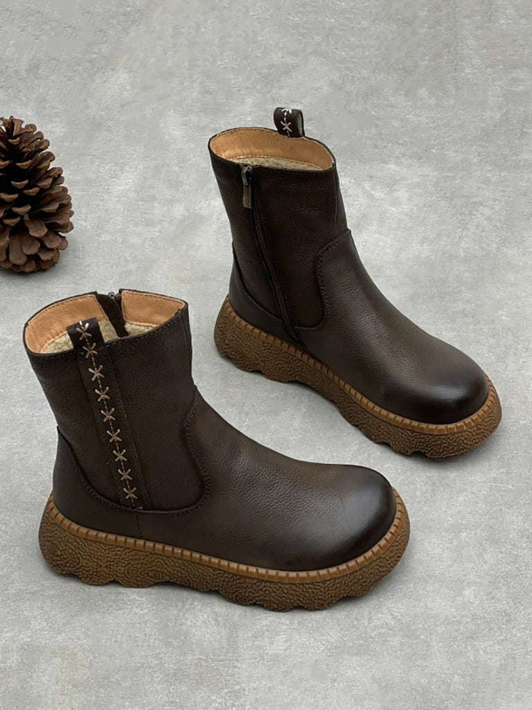 Women Vintage Genuine Leather Fleece-lined Ankle Boots