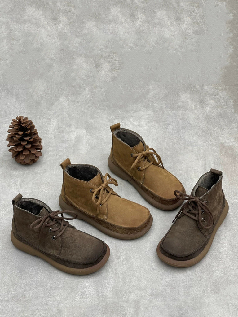 Women Winter Vintage Suded Leather Fleece-lined Boots