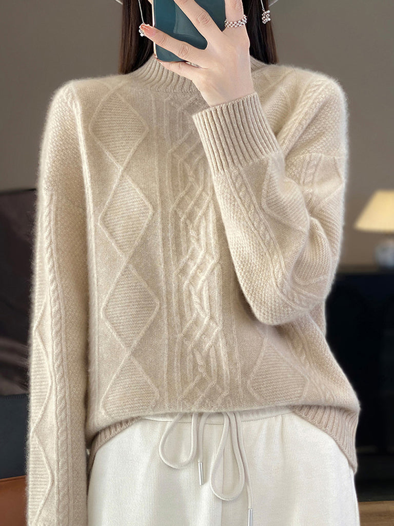 Women Autumn Pure Color 100%Wool Stand Collar Sweater