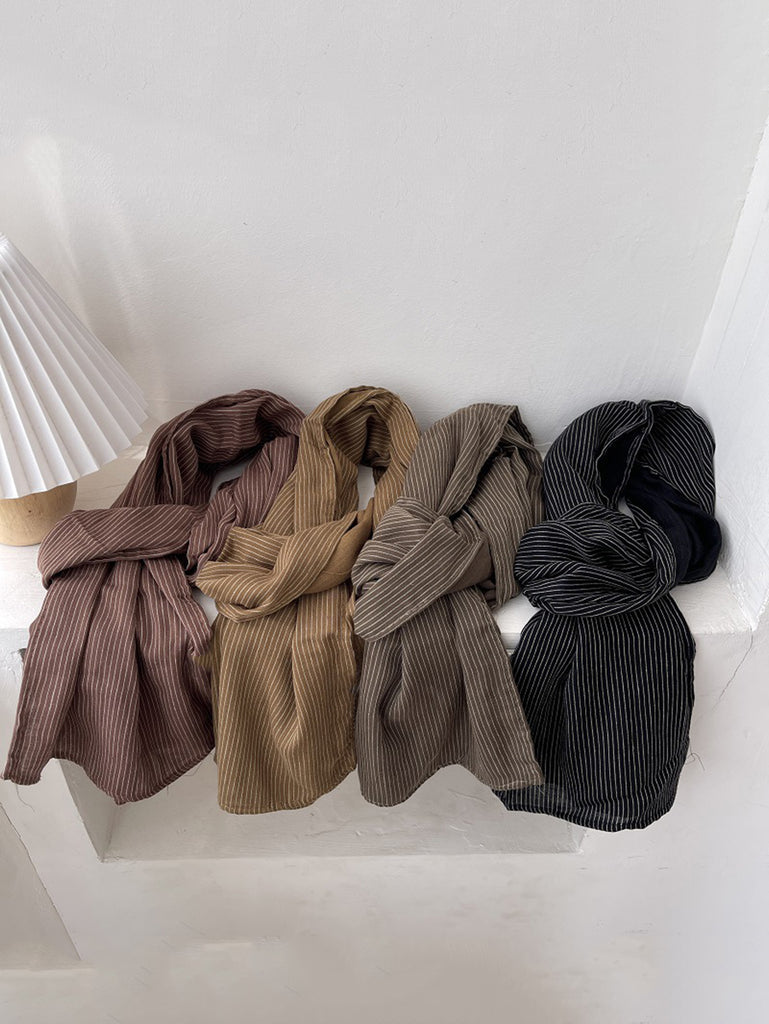 Women Retro Colorblock Stripe Raw-edge Shawl Scarf
