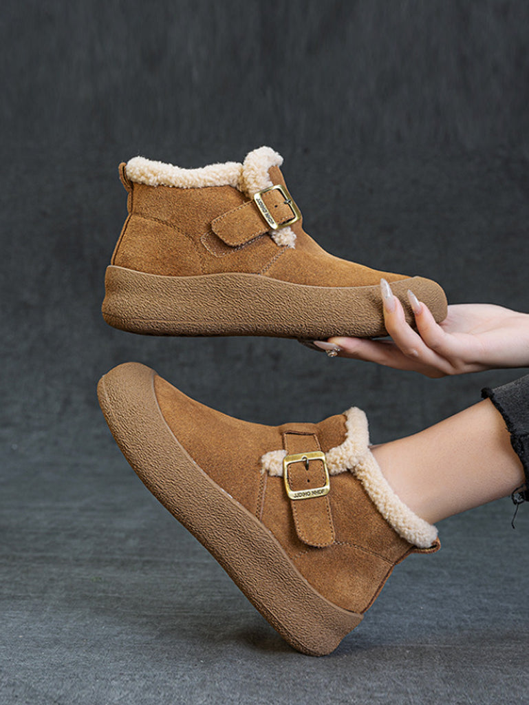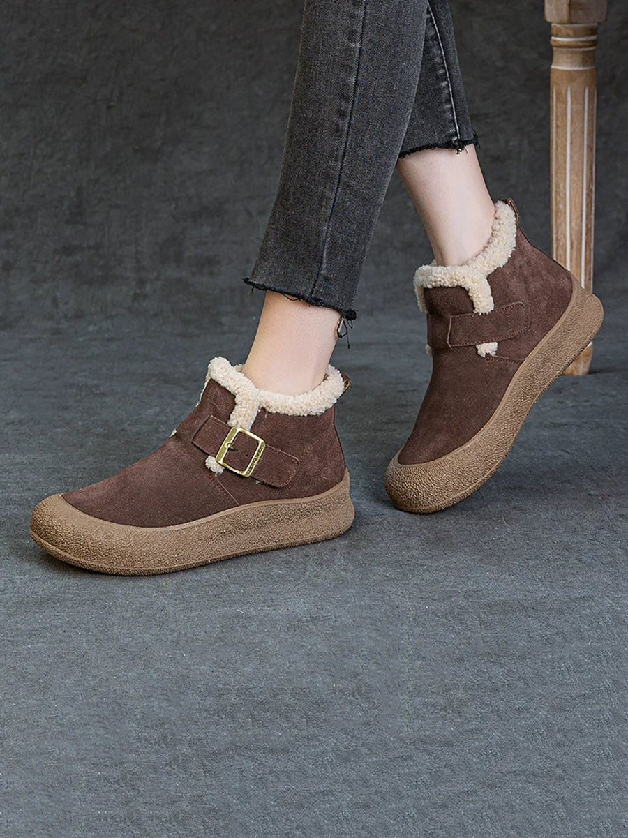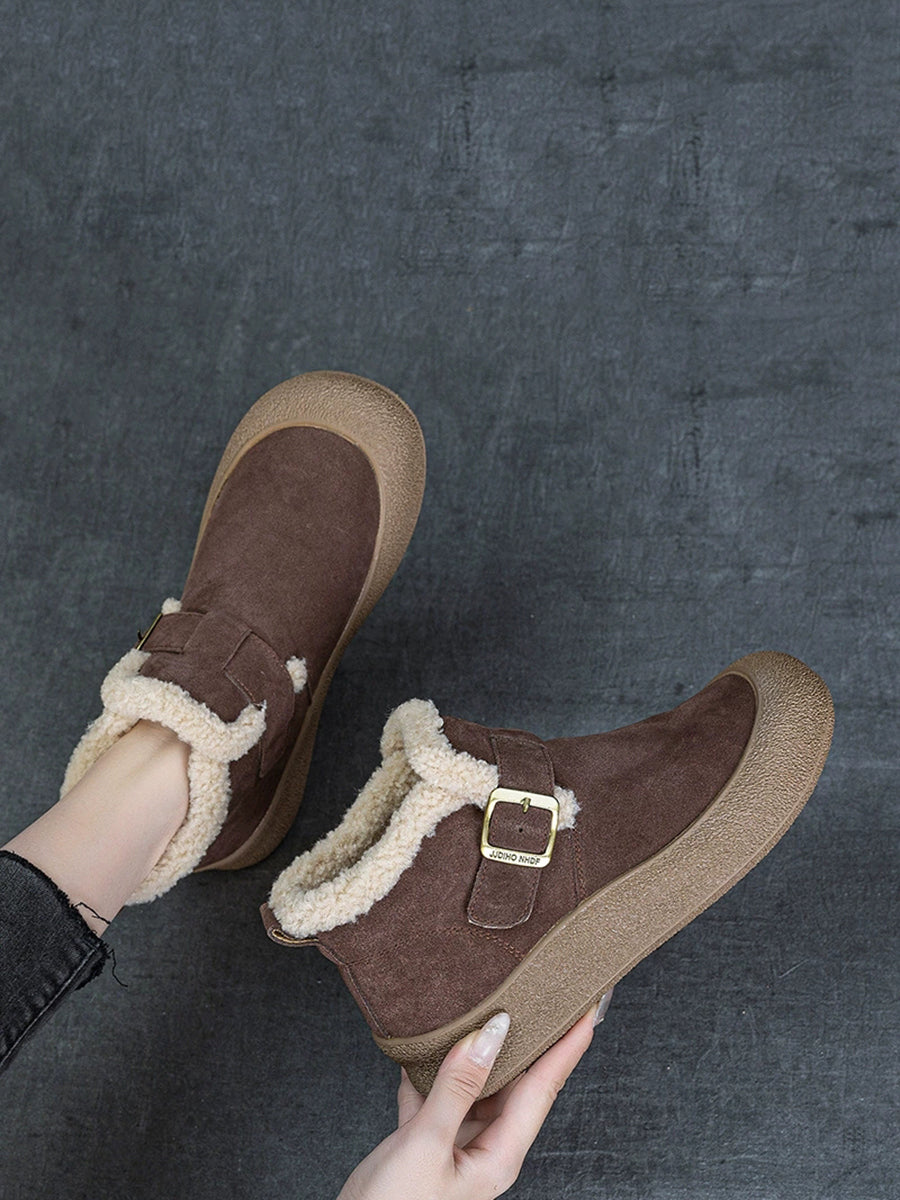 Women Winter Genuine Leather Fleece-lined Ankle Boots