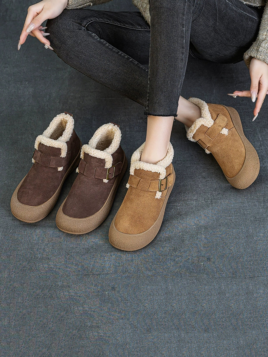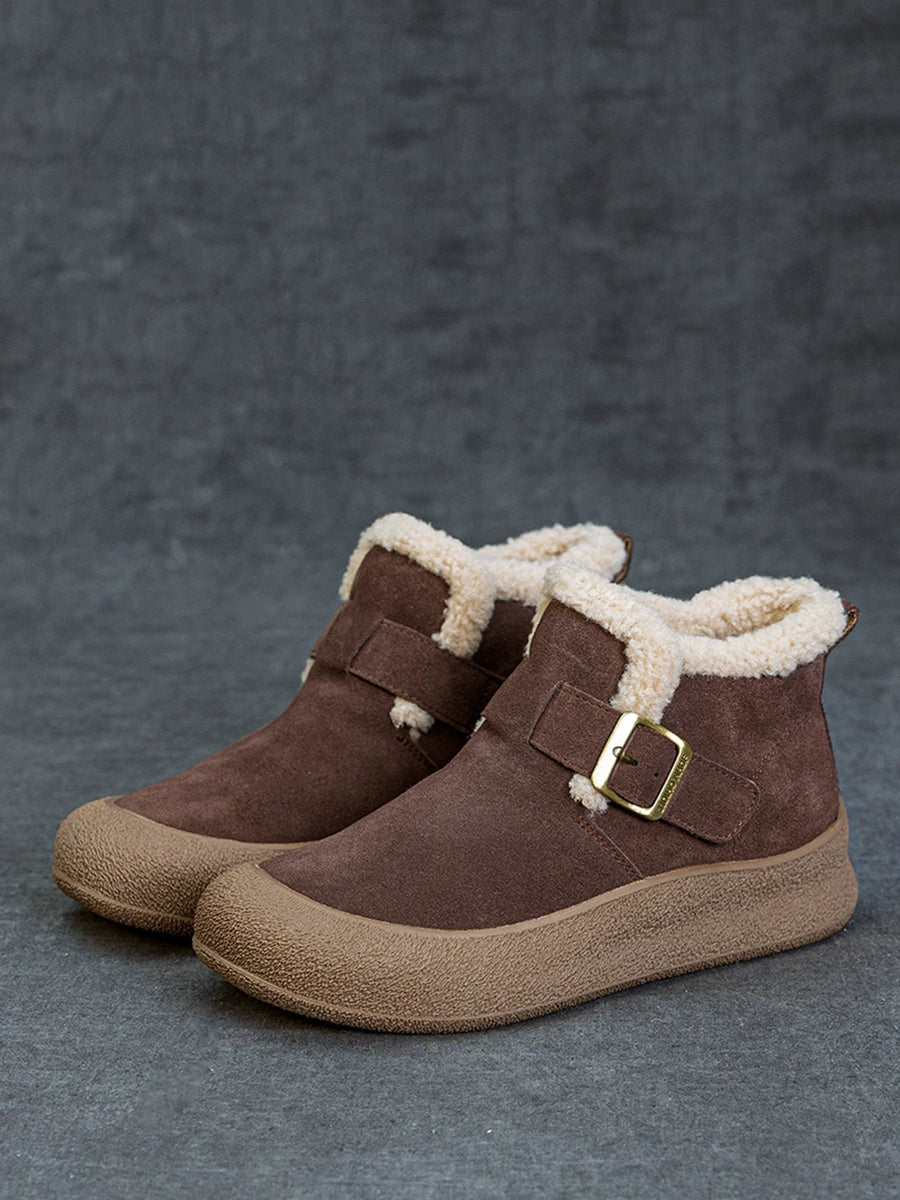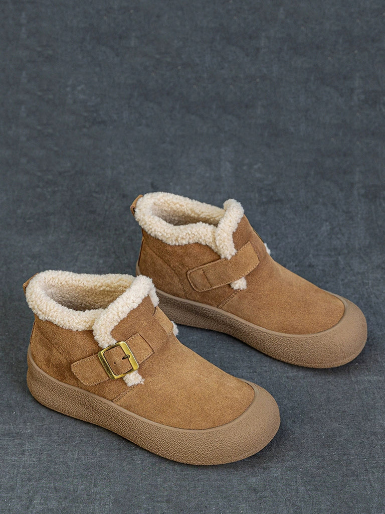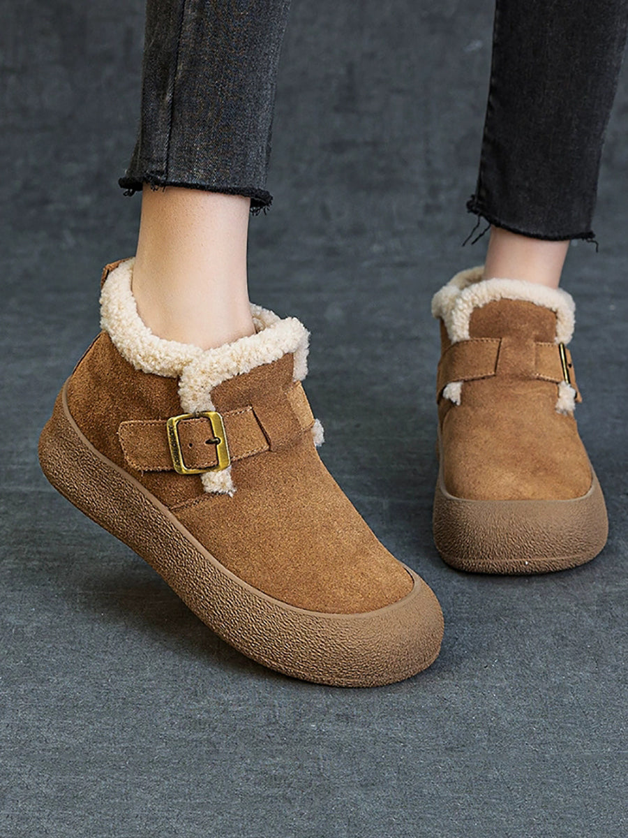 Women Winter Genuine Leather Fleece-lined Ankle Boots
