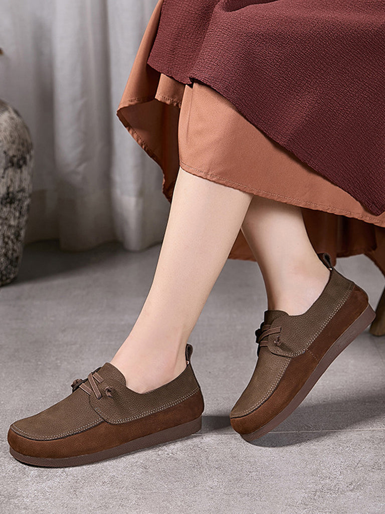 Women Autumn Genuine Leather Spliced Flat Shoes