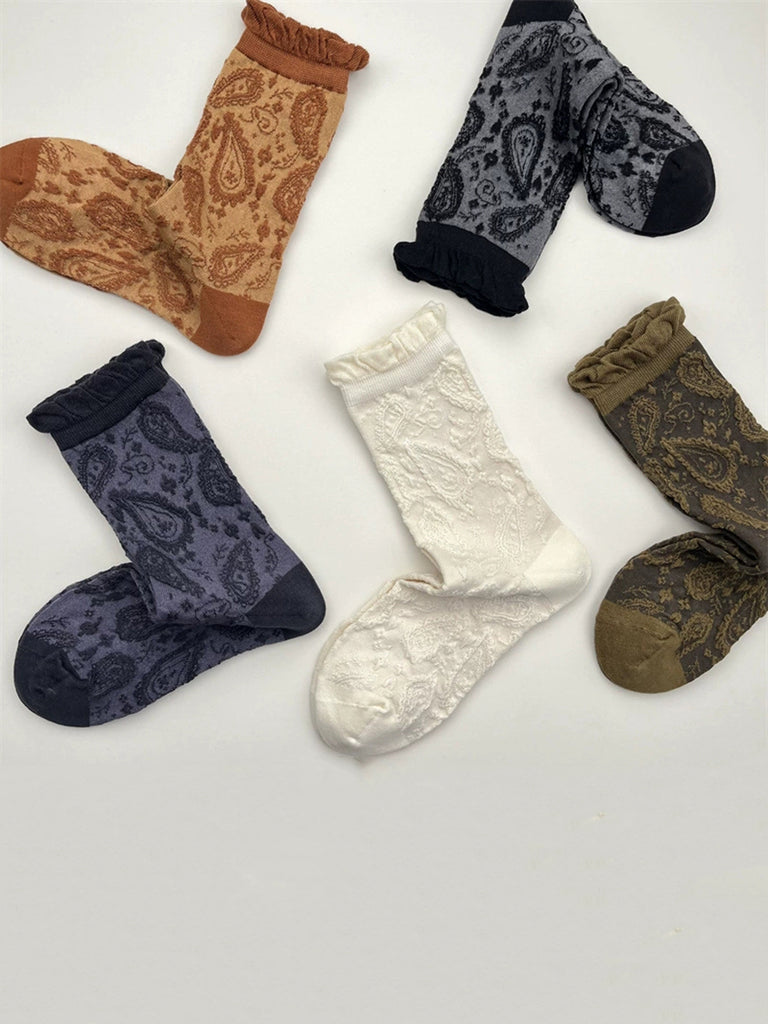 5 Pairs Women Vintage Jacquard Cotton Socks