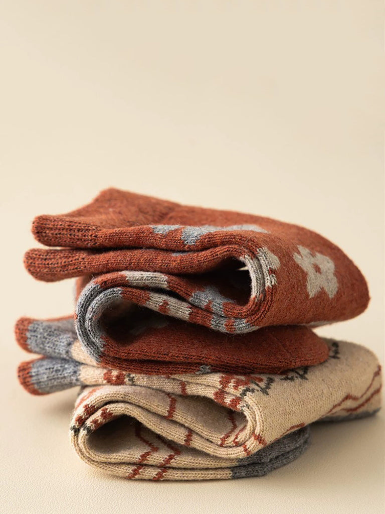 5 Pairs Winter Ethnic Flower Mid Heel Socks