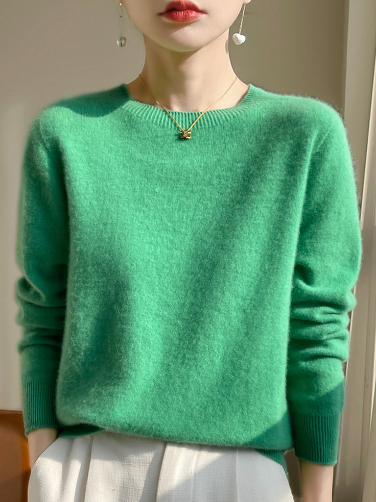 Women Autumn Casual Pure Color O-Neck Wool Sweater