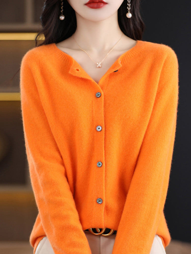 Women Autumn 100%Wool Colorful Button O-Neck Sweater