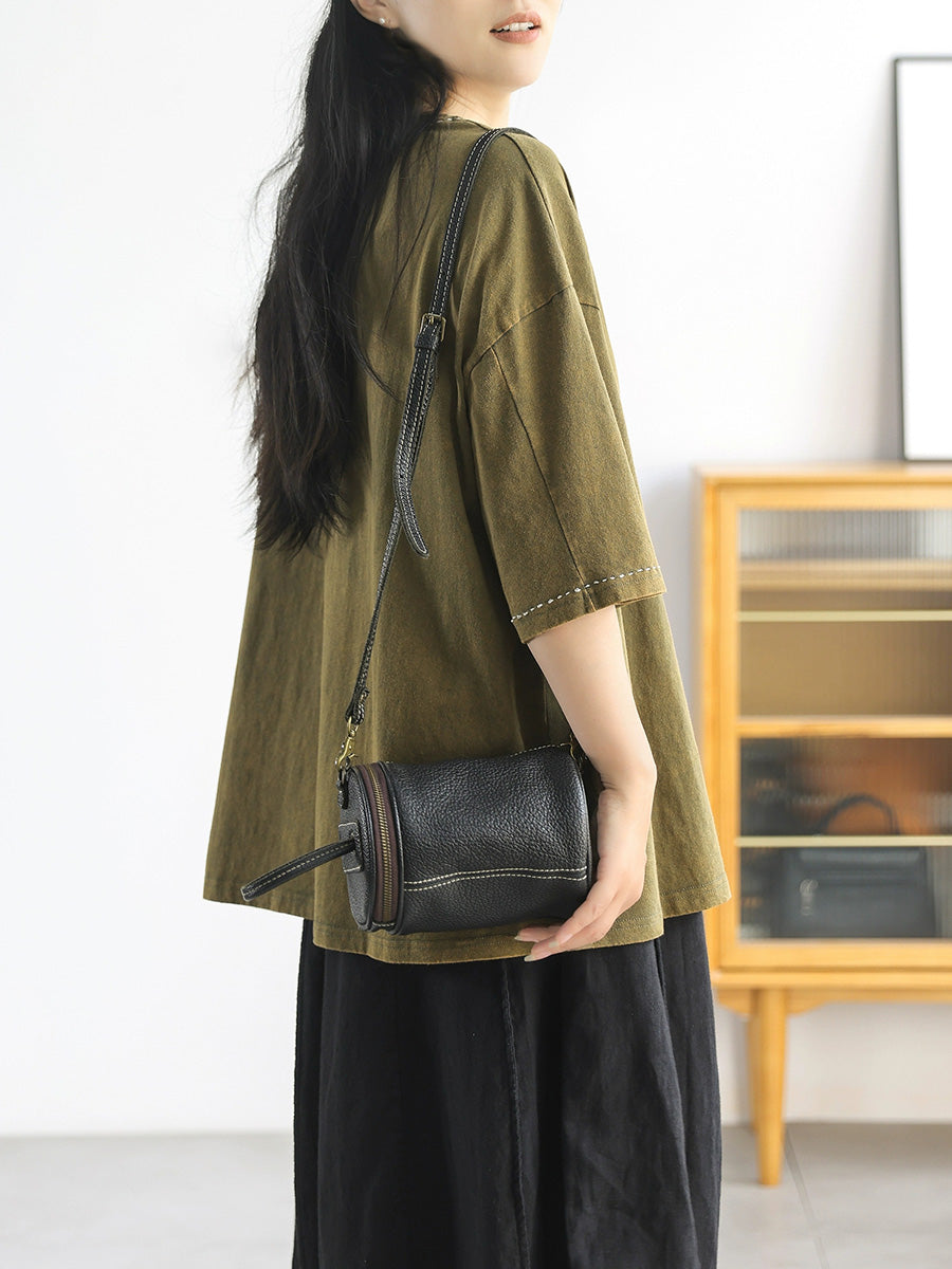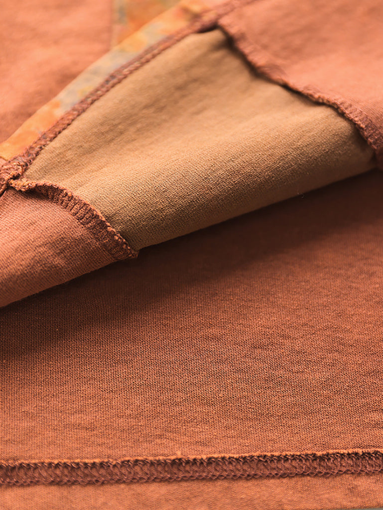 Women Summer Artsy Flower Spliced 100%Cotton O-Neck Shirt